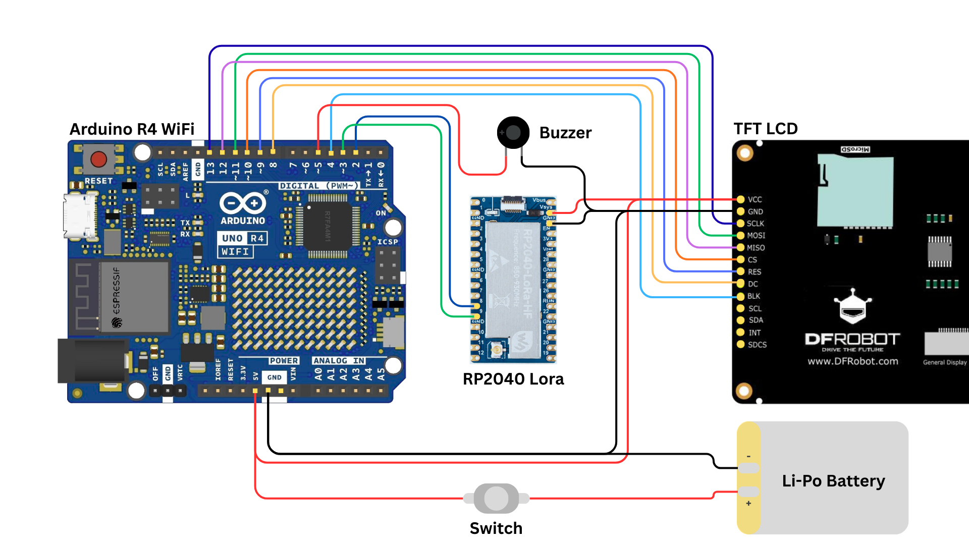 - Drive the TFT display and buzzer for real-time monitoring.