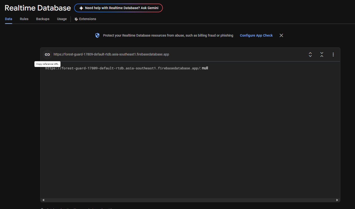 - Click Database secrets → Show → Copy the secret.
