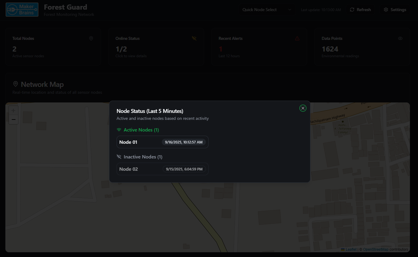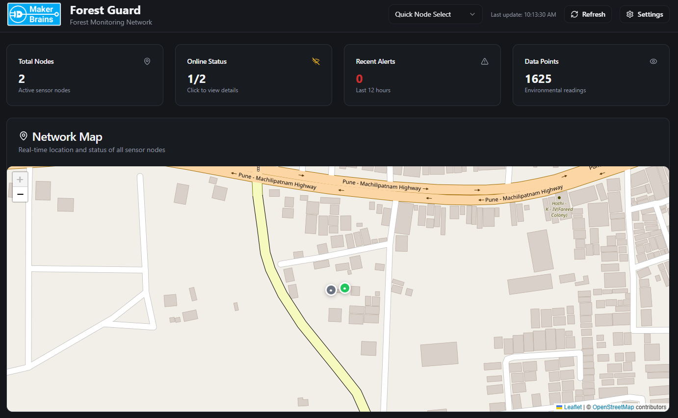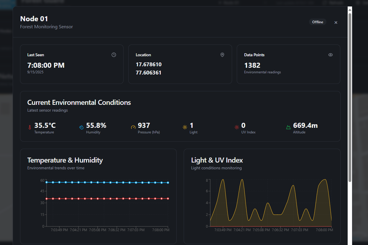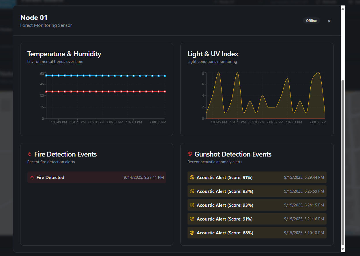 Forests are the lungs of our planet, yet they remain vulnerable to poaching, illegal logging, and devastating wildfires. Remote regions are often unmonitored because they lack infrastructure, no cellular coverage, no internet, and no reliable power. Traditional solutions depend on towers, GSM networks, or satellite links, all of which are either unreliable or prohibitively expensive in deep forest zones. Forest Guard redefines forest monitoring with a self-sustaining, decentralized, and intelligent mesh network that brings security where no traditional network can.