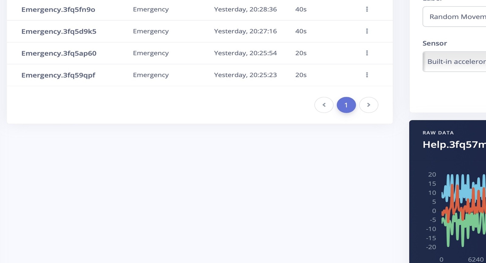 For “Emergency” action, I have continuously tapped the finger with a SiLabs board on a flat surface for five times without any delay. I repeated this process for about 2 minutes to collect enough training data, and another 20 seconds for testing data.