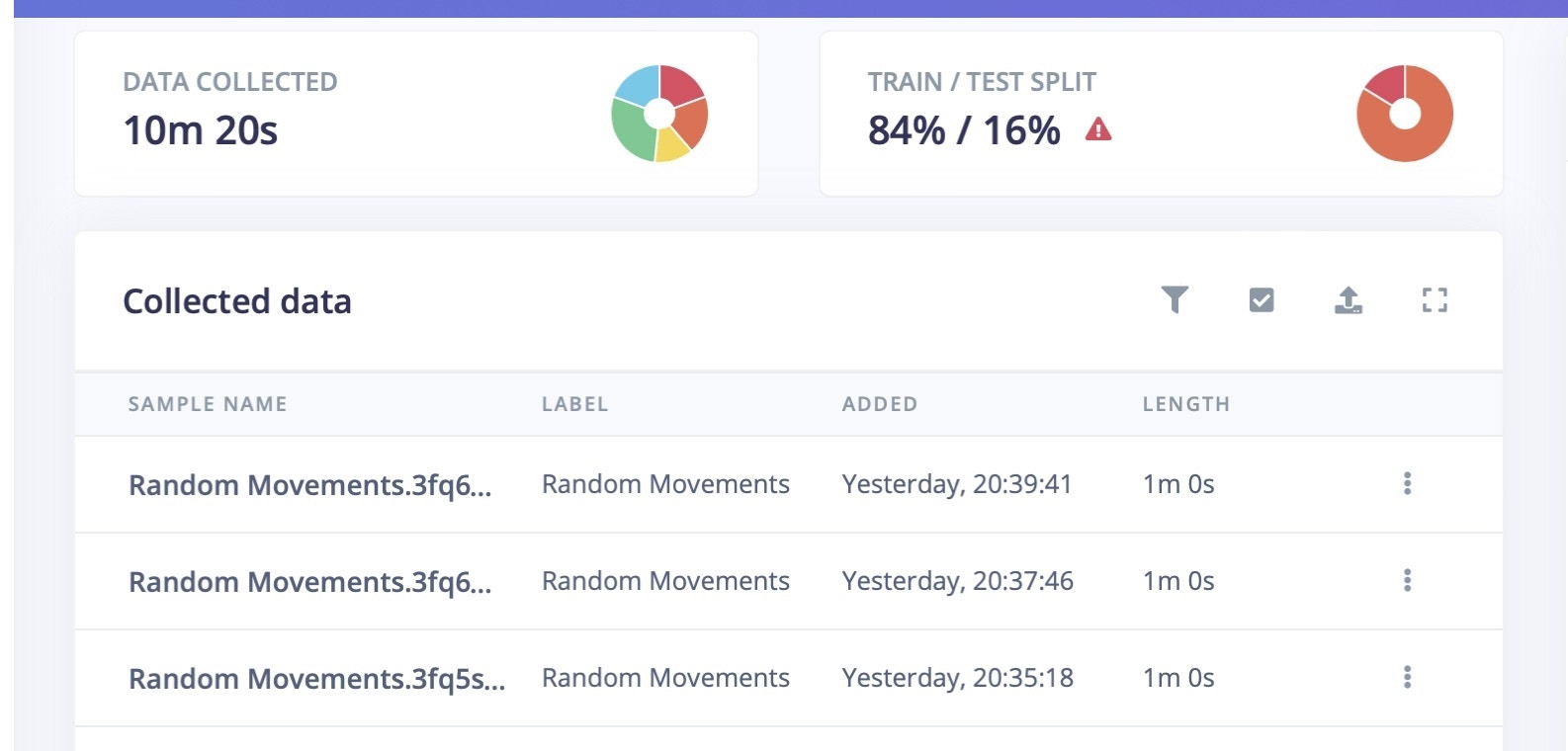 Now we have 10 minutes and 20 seconds of data. And the data is split into a 84:16 ratio as training and testing data.