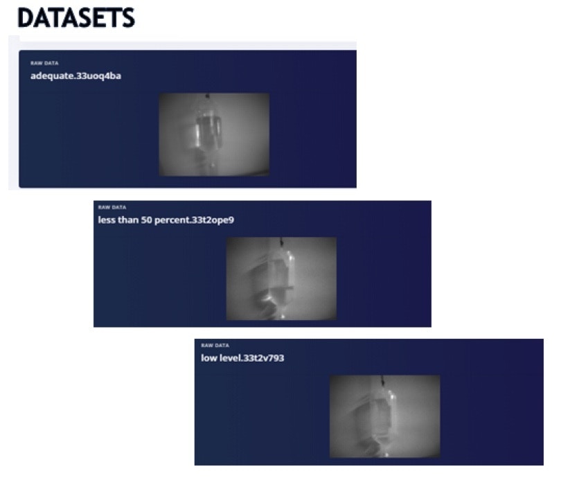 I have collected 117 images of an IV fluid bag in various states, consisting of “adequate”, “less than 50%”, and “low level”.