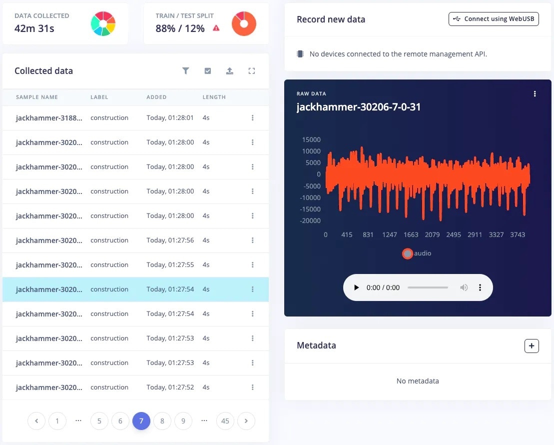 As you might have guessed already, I am using Edge Impulse for building a TinyML model. Let’s explore our training pipeline.1. Data Collection