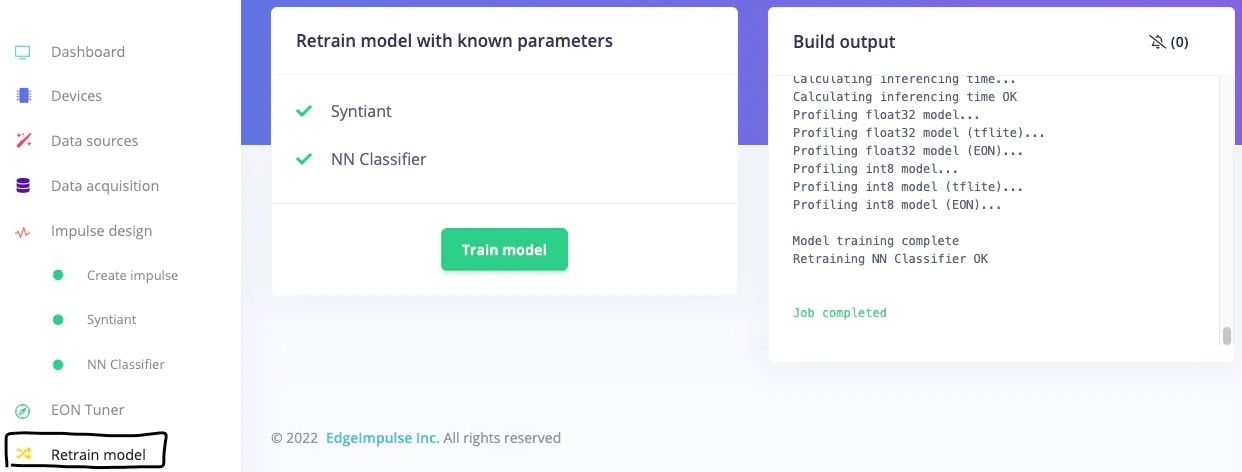 After updating the dataset, go to the Retrain model tab and click on the “Train model” button.