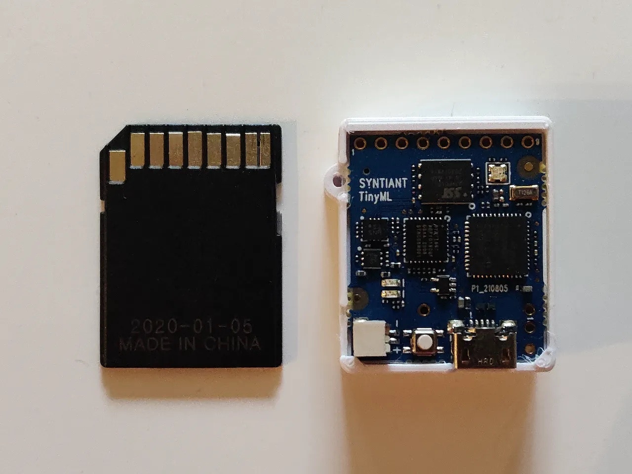 This is an interesting problem and I decided to use equally interesting hardware in this project: The Syntiant TinyML Board. This board is designed for voice, acoustic event detection, and sensor machine learning application. It is equipped with an ultra-low-power Syntiant NDP101 Neural Decision Processor, a SAMD21 Cortex-M0+ host processor, an onboard microphone and a 6-axis motion sensor on an SD-card size package. This board is extremely small and perfect for my application. The cherry on top is that Edge Impulse officially supports this board.