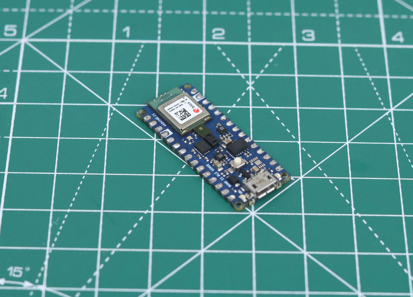 The heart of the Package Tracker is an Arduino Nano 33 BLE Sense. We opted for this board due to its tiny form factor and its high capability. It comes with a series of embedded sensors and here we use the LSM9DS1 sensor which is a 9-axis inertial module. It comes with one extra hardware serial port which benefits here, to connect with the GSM module.