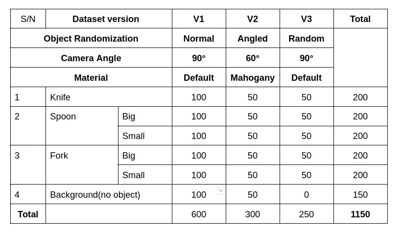 The environment for the experiment consists of movable and immovable objects (dynamic and static positioning objects). The immovable object consists of Lights, a Table and two Cameras. The movable objects are the cutlery, which is a spoon, fork and knife. We will use domain randomization to alter the properties of some of the movable and immovable objects. Assets which include objects and scenes are represented in the Replicator as USD.