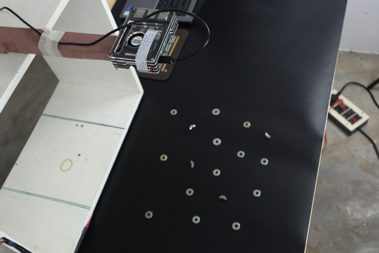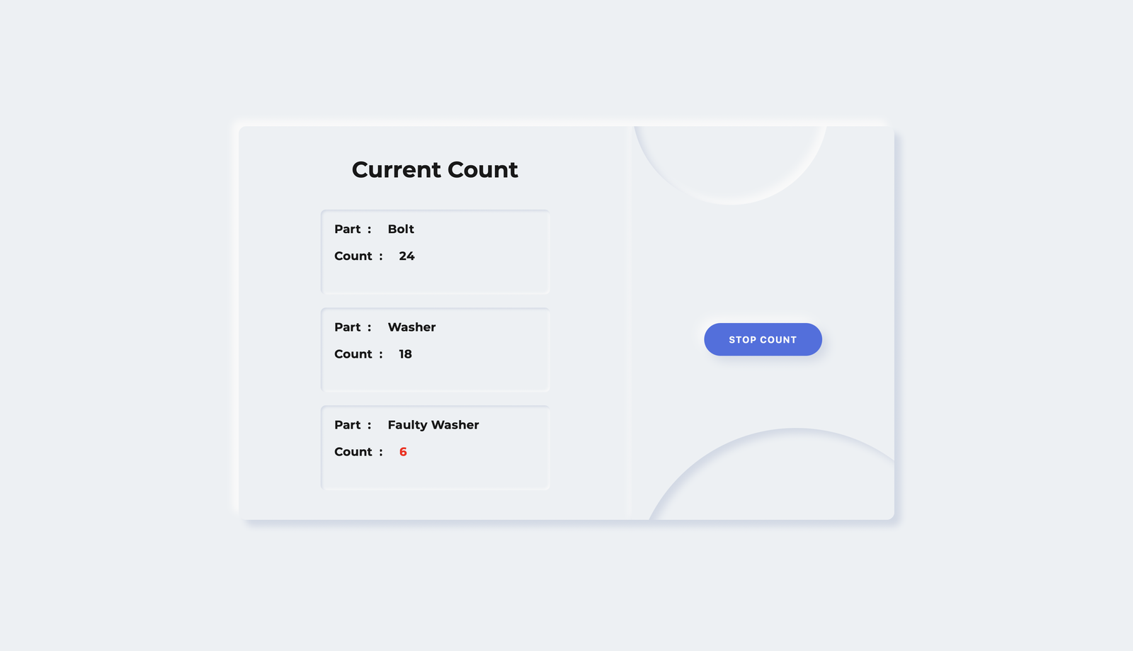 In this case, we are counting bolts and washers and faulty washers passing through the conveyor belt.