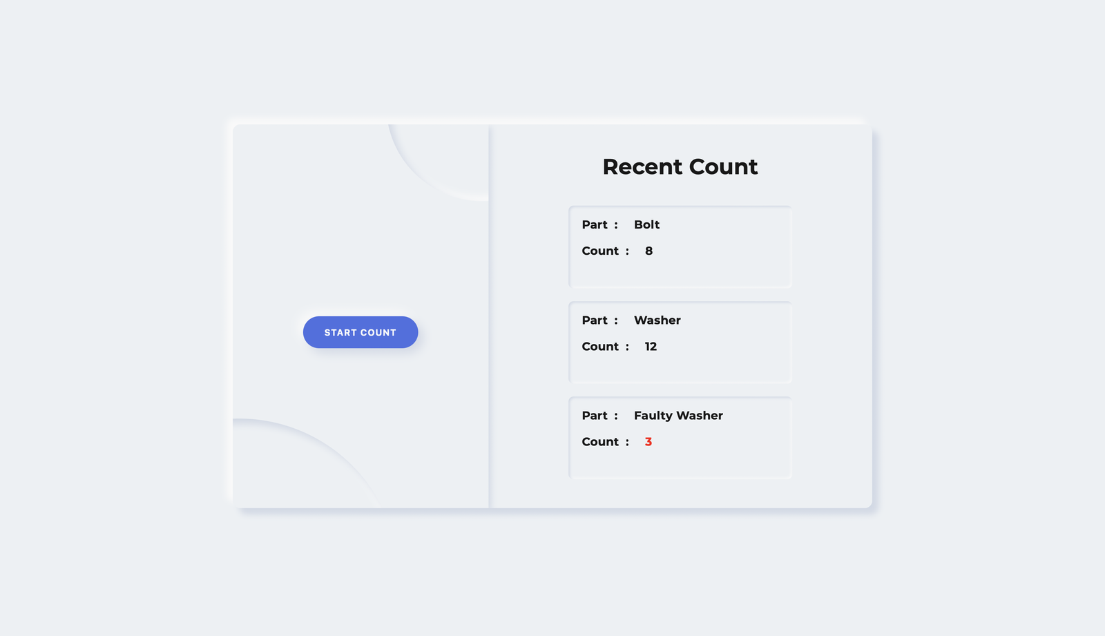 A webpage is created using HTML, CSS and JS to display the count in realtime. The data updated in Firebase is reflected in the webpage in realtime. The webpage displays Recent Count when the counting process is halted, and displays Current Count whenever the counting process is going on.