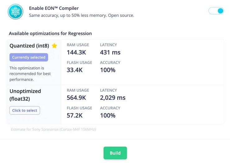 - Sony Spresense supports 156, 32 or 8 MHz clock frequency. I set clock mode to 32 MHz, as the Camera can work on it. And power consumption is almost half compared to 156 MHz.