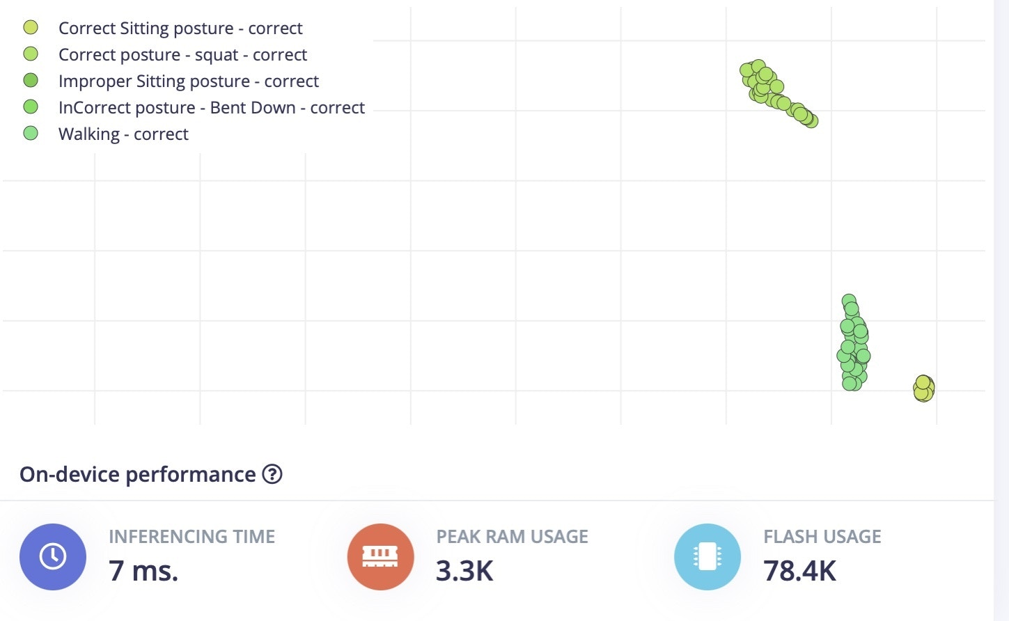 I have created a wearable device using a SiLabs Thunderboard Sense 2 which can be fitted to a worker’s waist. The worker can do their normal activities, and the TinyML model running on the hardware will predict the posture and communicate to the worker through BLE communication. The worker can get notified in the Light Blue App on their phone or smartwatch.