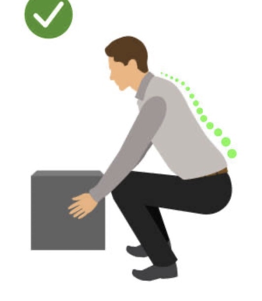 Lifting can be another issue affecting the posture of those who work in manufacturing. If you are not careful, an improper lifting posture can lead to a back injury. For lifting objects off the ground, the correct posture is a “Squat” type where the incorrect posture is a “bent down” type.