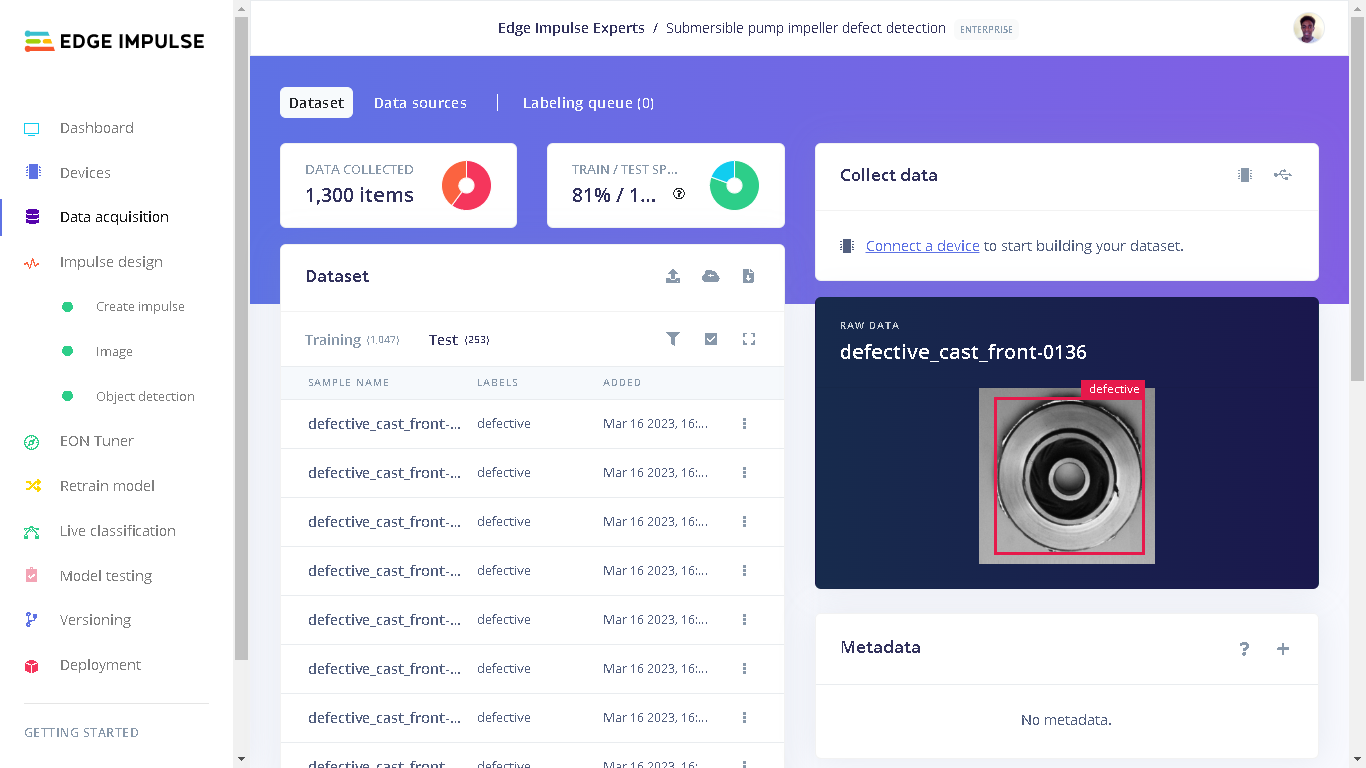 Using the.eim executable and Edge Impulse Linux Python SDK, I developed a Web Application using Flask that counts the number of good, and number of defective submersible pump impellers. The images and the counts are then displayed on the Webpage in real time.