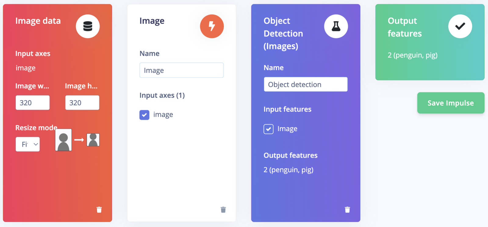To create an Impulse, follow these steps:- Go to the Impulse Design section, then select the Create Impulse page. We have opted for a 320x320 pixel image size in the “Image Data” form fields to achieve better accuracy.
