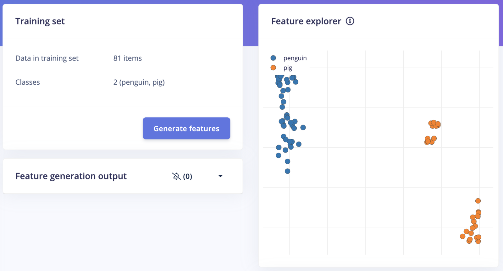 We captured 101 images of the pigs and penguins using the OAK-D camera and uploaded them to Edge Impulse Studio.