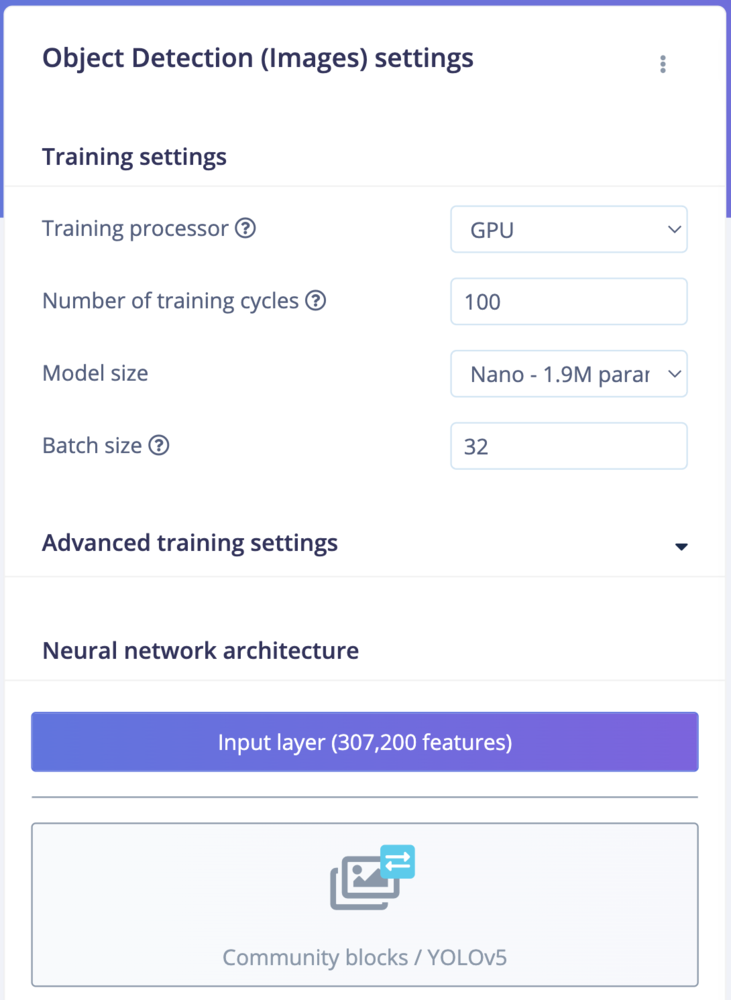 - Click on “Add a learning block” and choose “Object Detection (Images)”.