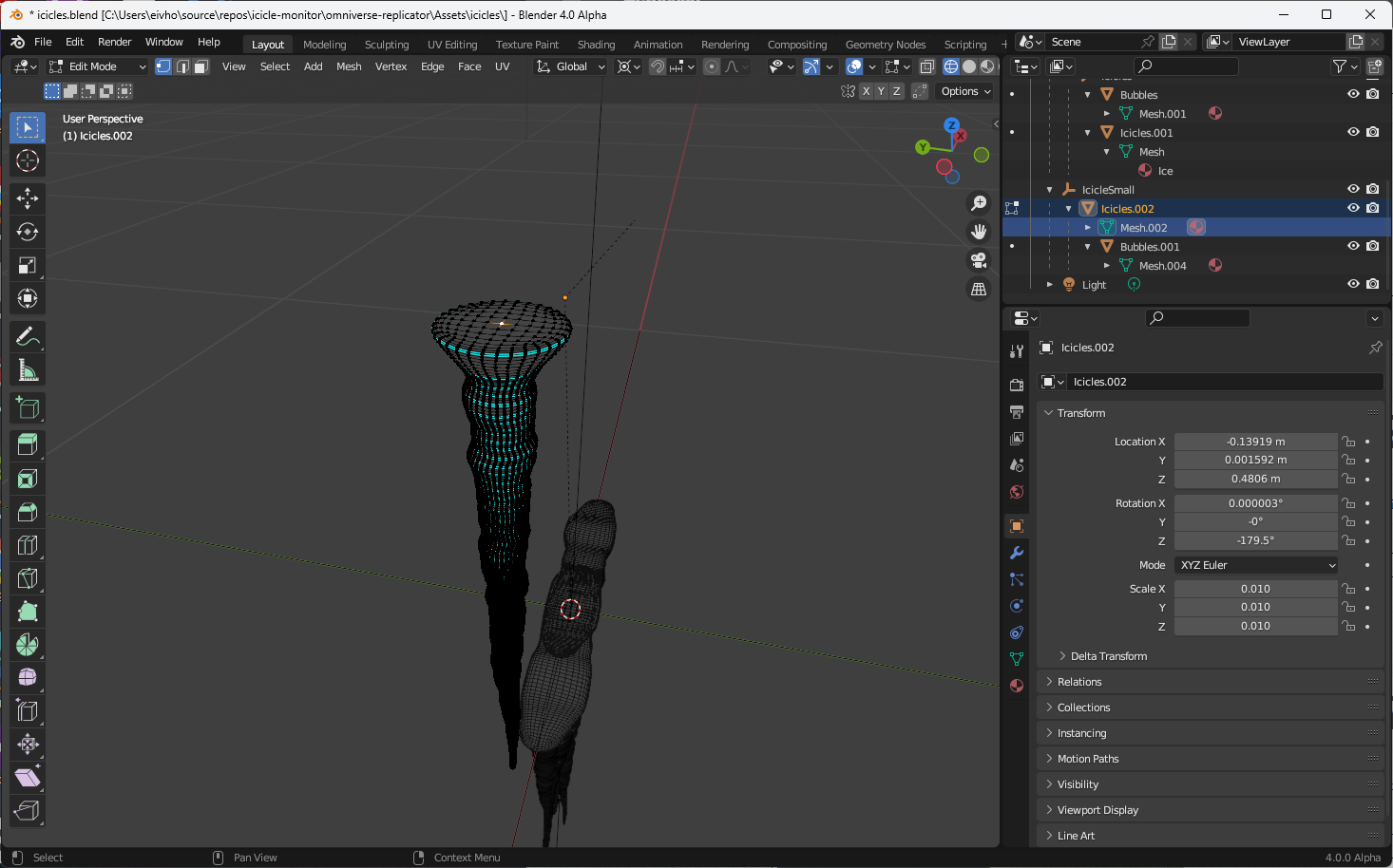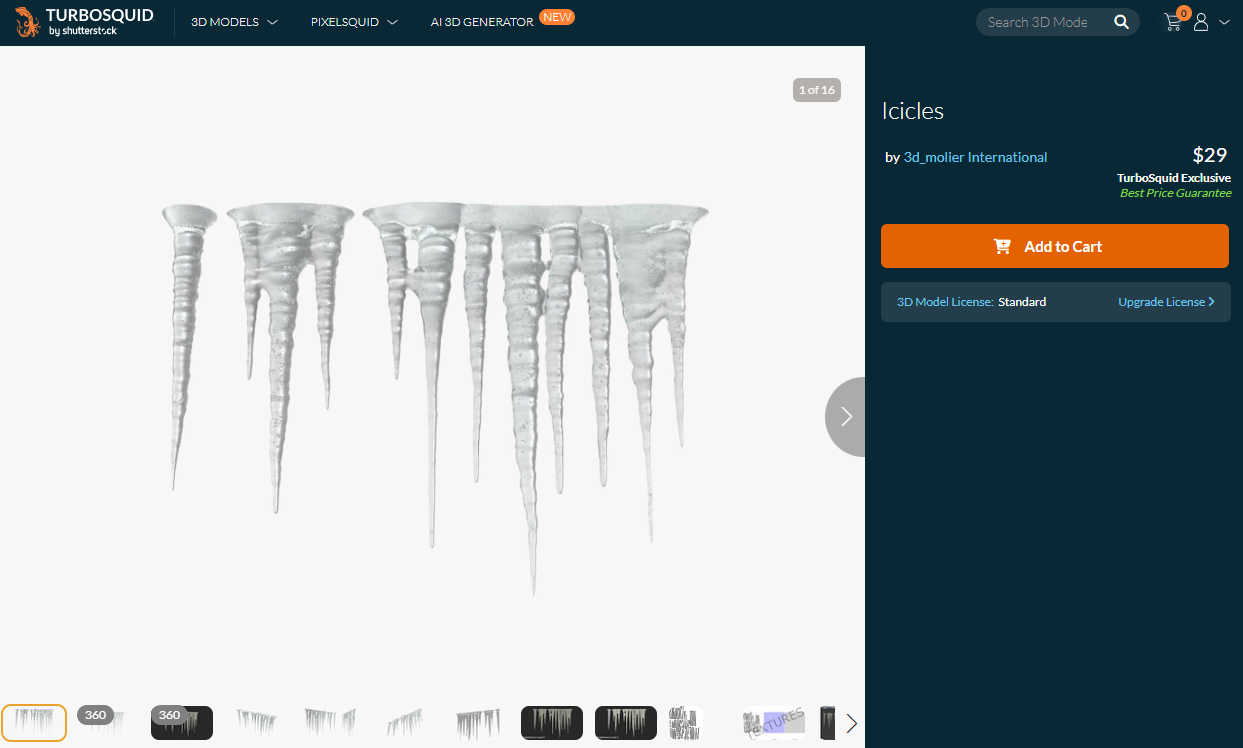 To represent the icicle, a high quality model pack was purchased at Turbo Squid.
