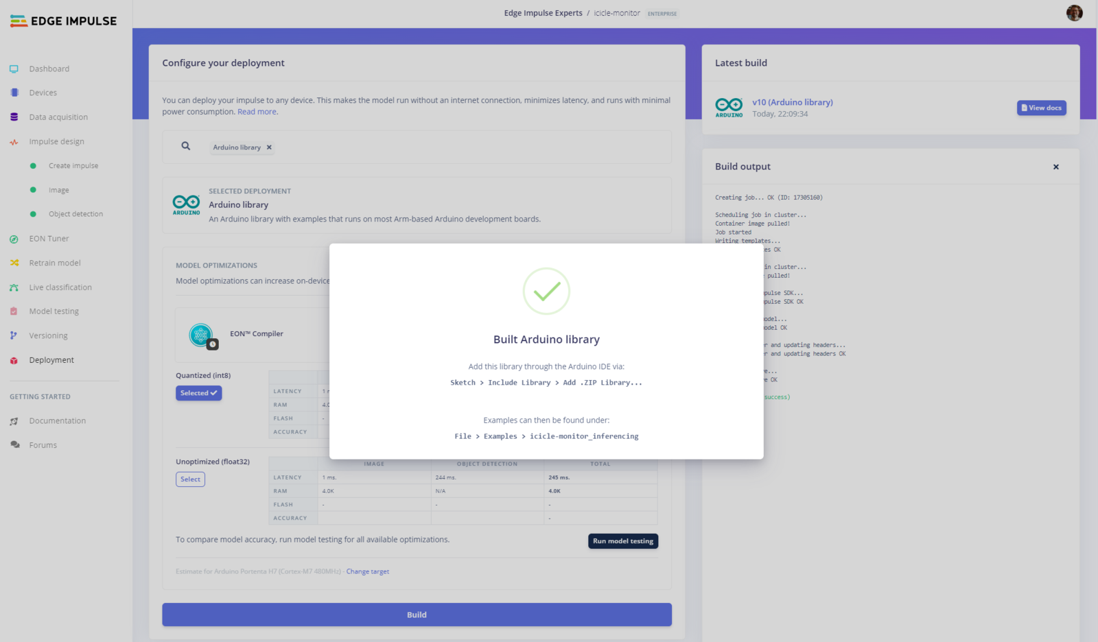 Start by selecting Arduino library as a Deployment target.