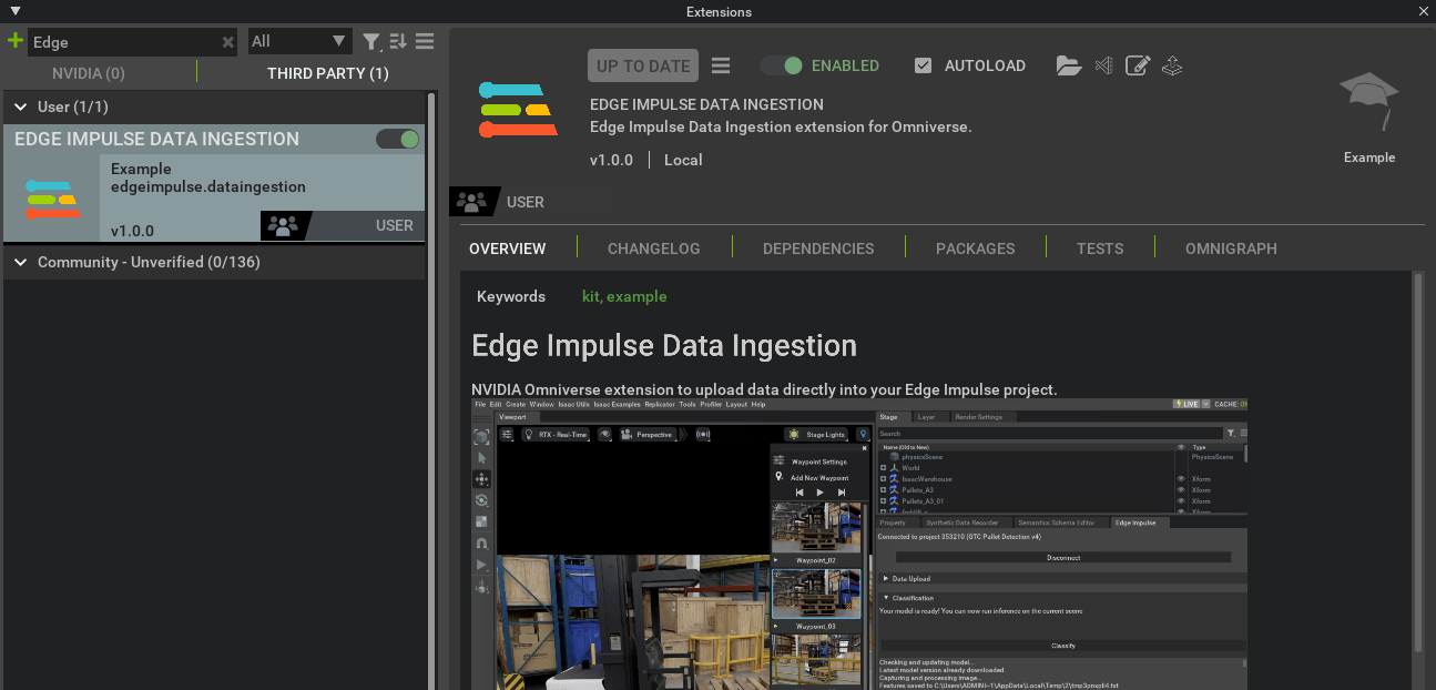 - NVIDIA Isaac Sim with Edge Impulse extension