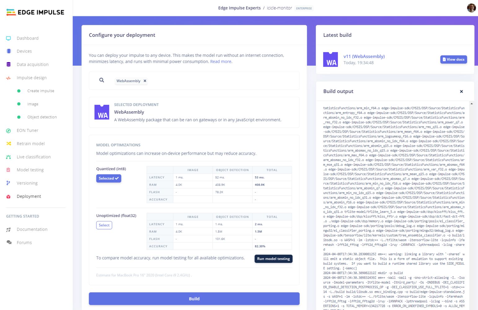 To get visual verification our model works as intended we can go to Deployment in Edge Impulse Studio, select OpenMV Firmware as target and build.