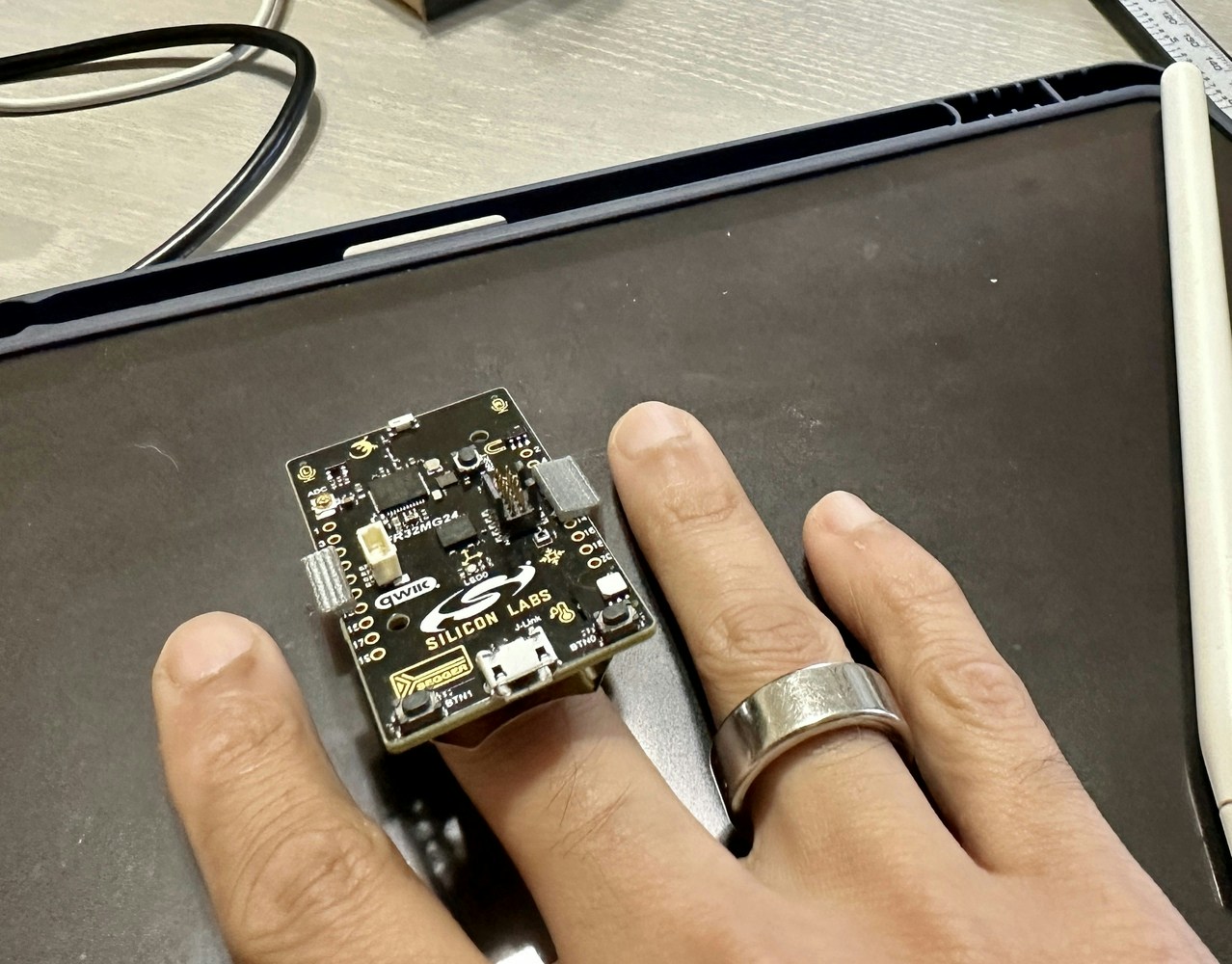 In this project I am not going to explore or research a new TinyML use-case, rather I’ll focus on how we can reuse or extend Edge Impulse Public projects for a different microcontroller. Manivannan Sivan had created a project Gesture Recognition for Patient Communication which is a wearable device running a tinyML model to recognize gesture patterns and send a signal to a mobile application via BLE. Check out his work for more information. In this project, I am going to walk you through how you can clone his Public Edge Impulse project, deploy to a SiLabs Thunderboard Sense 2 first, test it out, and then build and deploy to the newer SiLabs xG24 device instead.