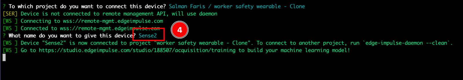 From here, log in with your Edge Impulse credentials and choose the cloned project from the project list that follows.