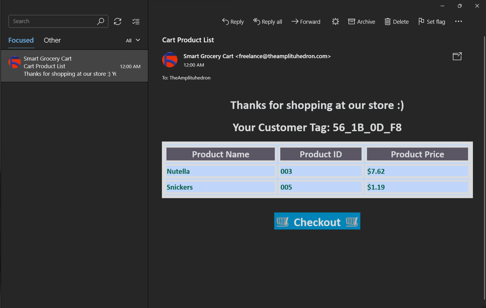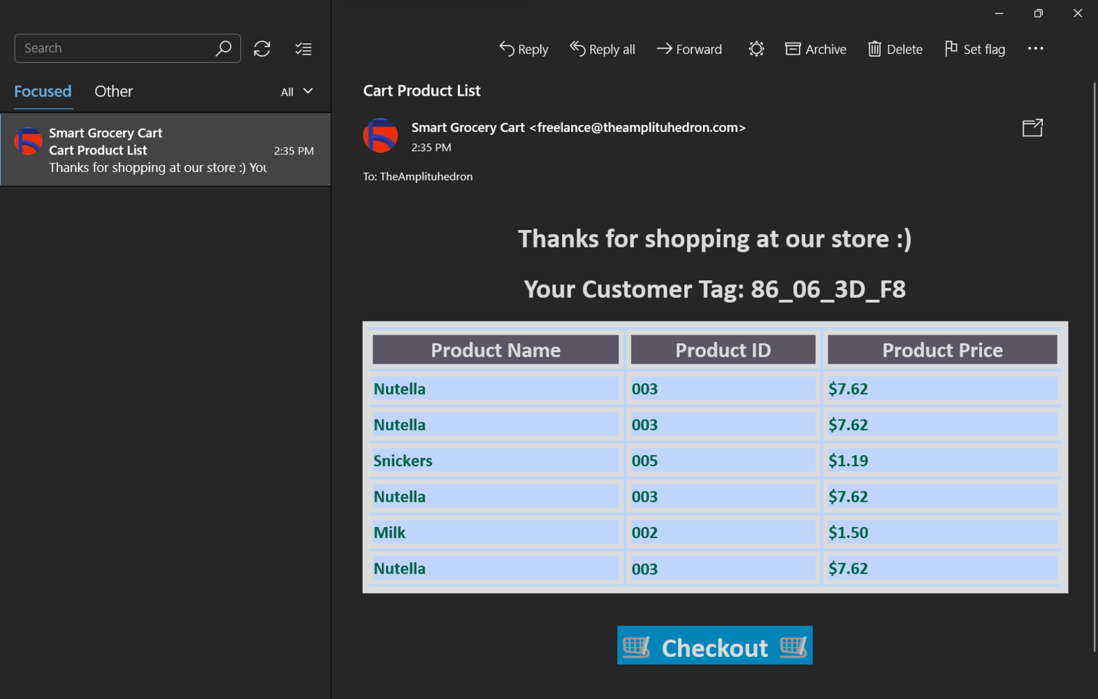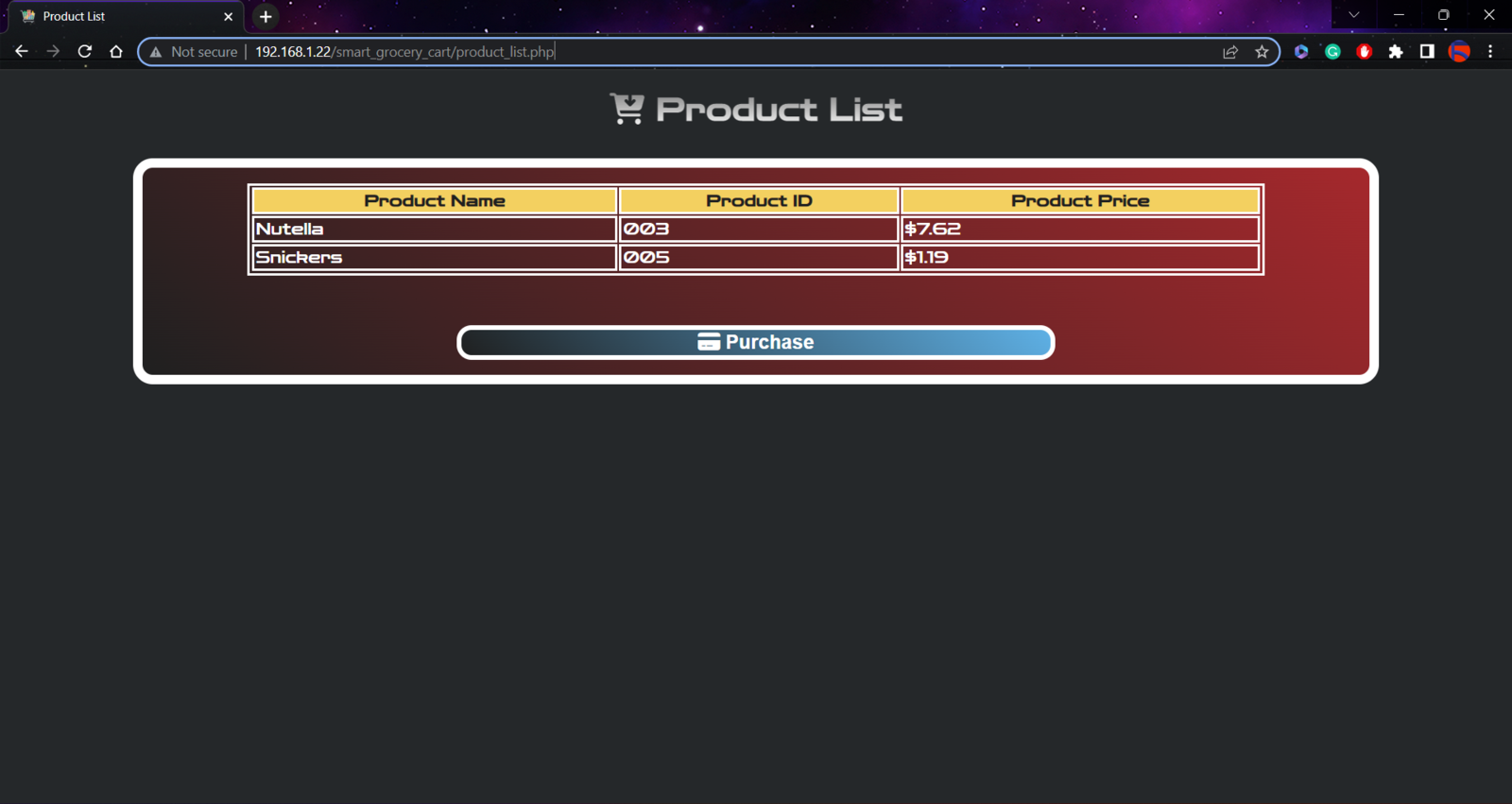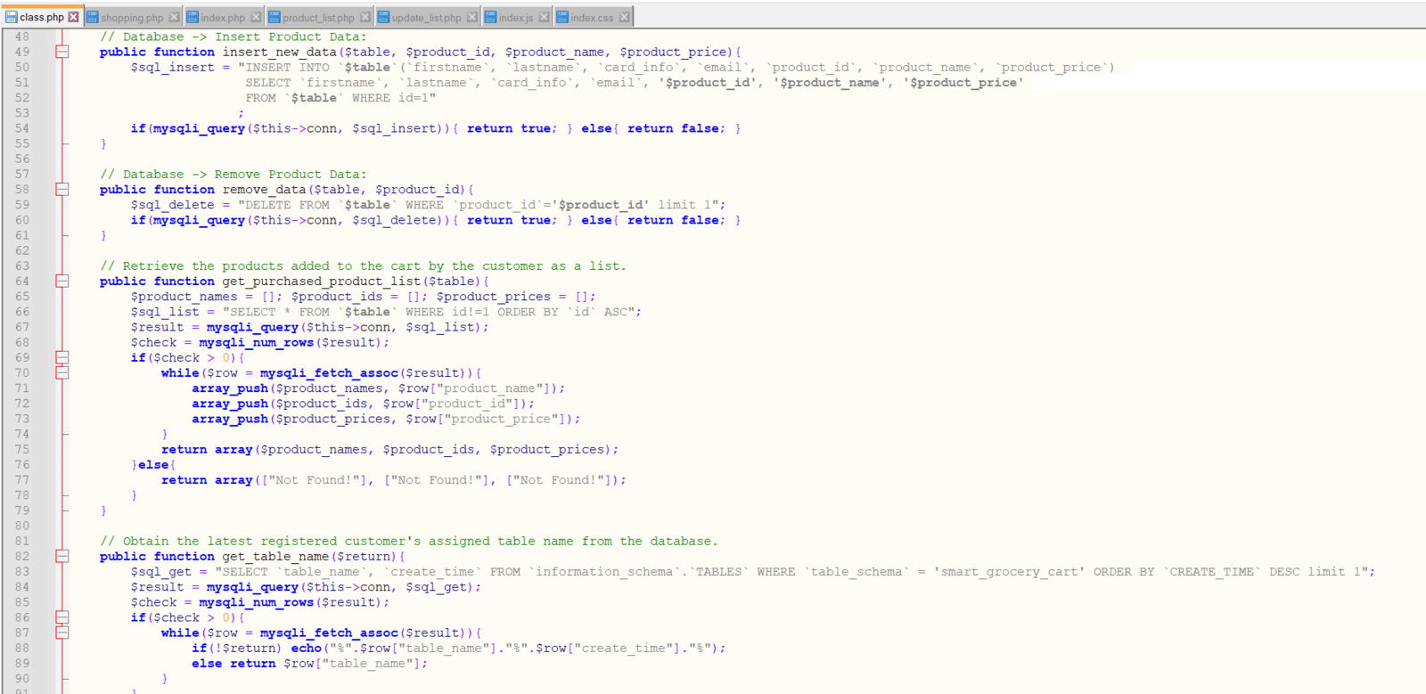 To provide an exceptional online customer experience, I developed a full-fledged web application from scratch in PHP, JavaScript, CSS, and MySQL. This web application lets customers create accounts via its interface, receives requests from the device to add or remove the products detected by the object detection model to/from the customerβs database table, and creates a concurrent shopping list. Also, it sends an HTML email to the customerβs registered email address via SendGrid Email API when the customer finishes shopping and is ready to leave the store, including the generated shopping list and the payment link. As shown below, the web application consists of one folder and 7 code files:- /assets