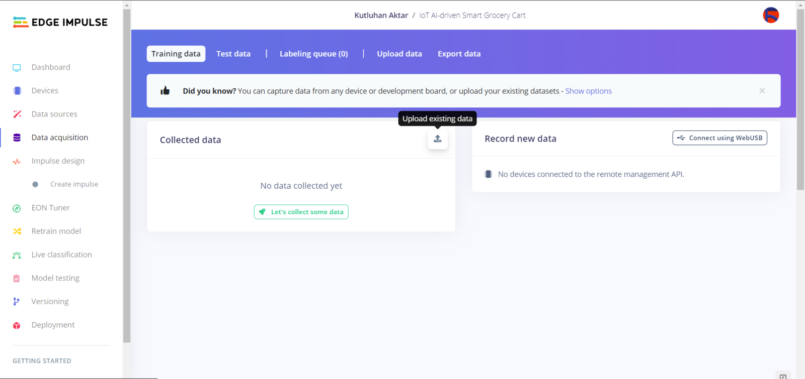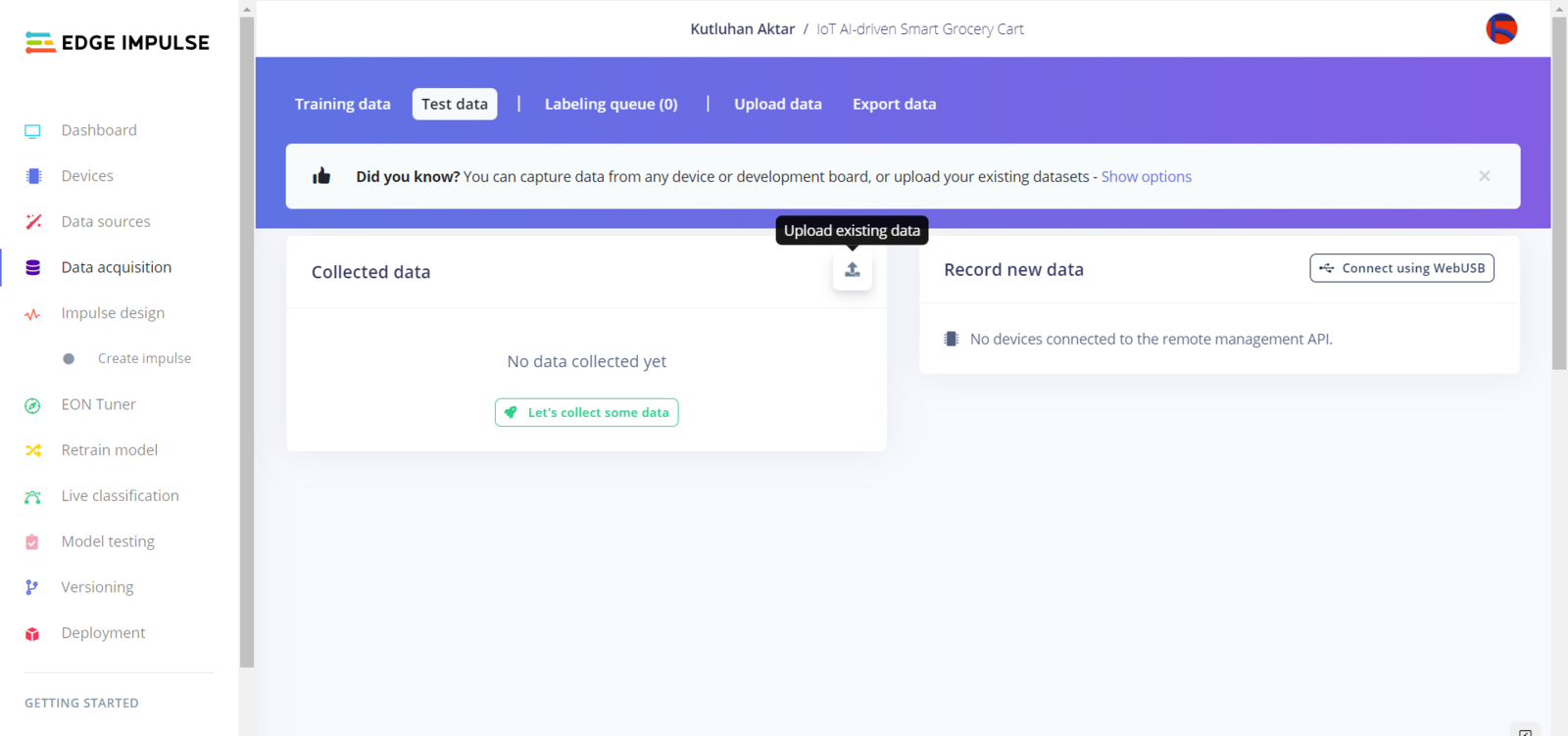 Data collection | IoT AI-driven Smart Grocery Cart w/ Edge Impulse Experimenting with the model | IoT AI-driven Smart Grocery Cart w/ Edge ImpulseFurther Discussions