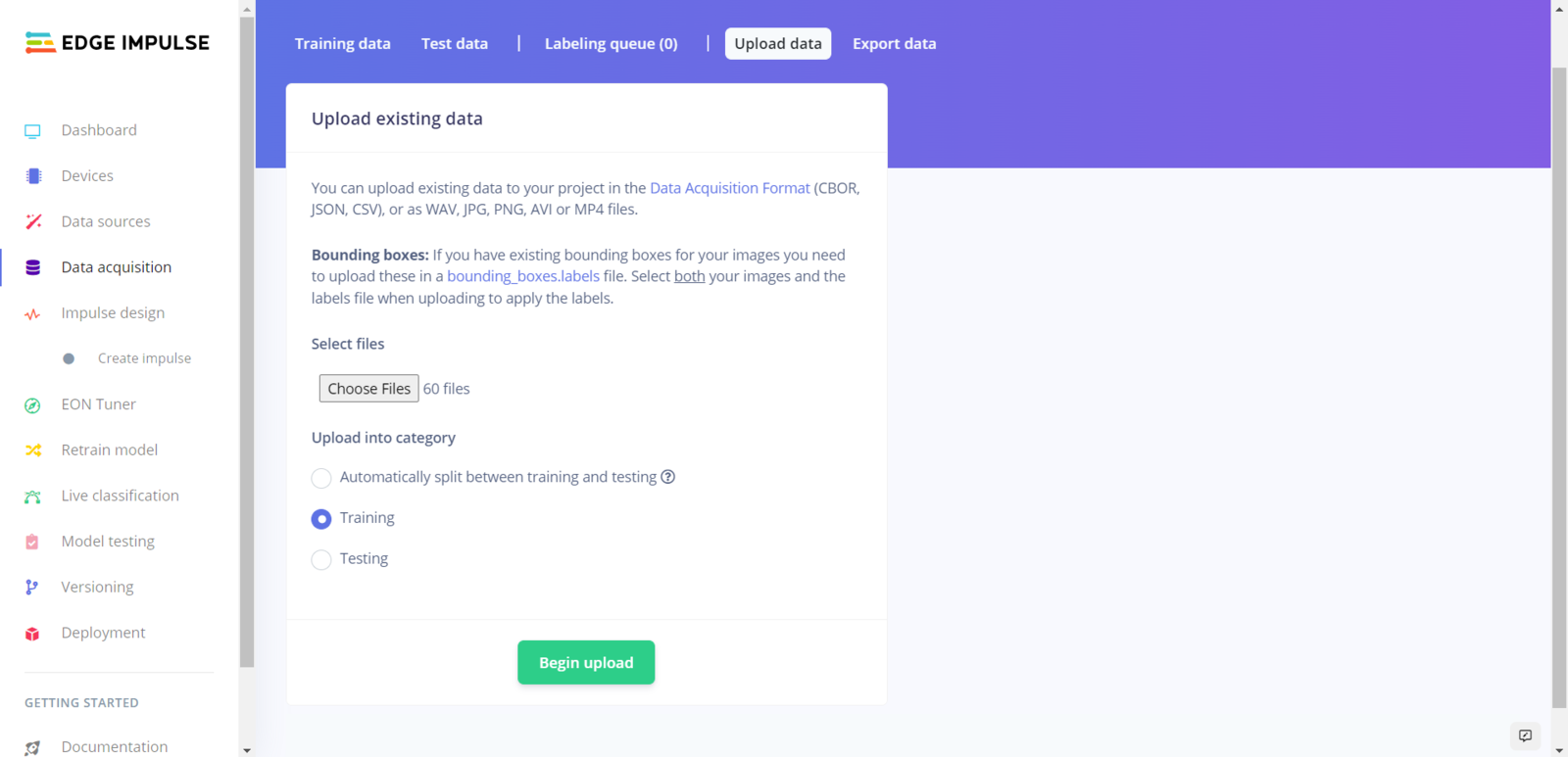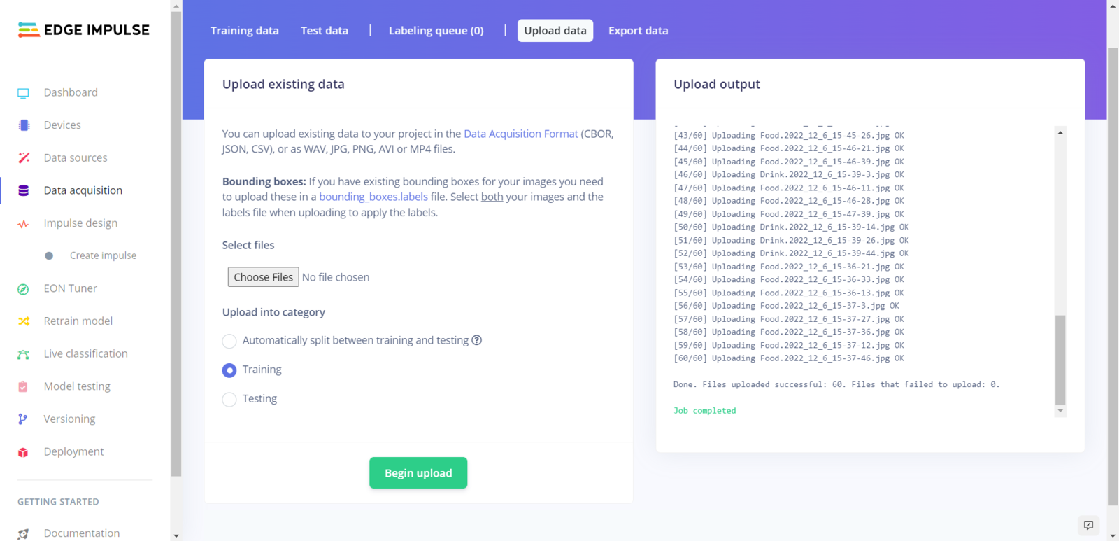 Step 6.1: Uploading images (samples) to Edge Impulse and labeling samples
