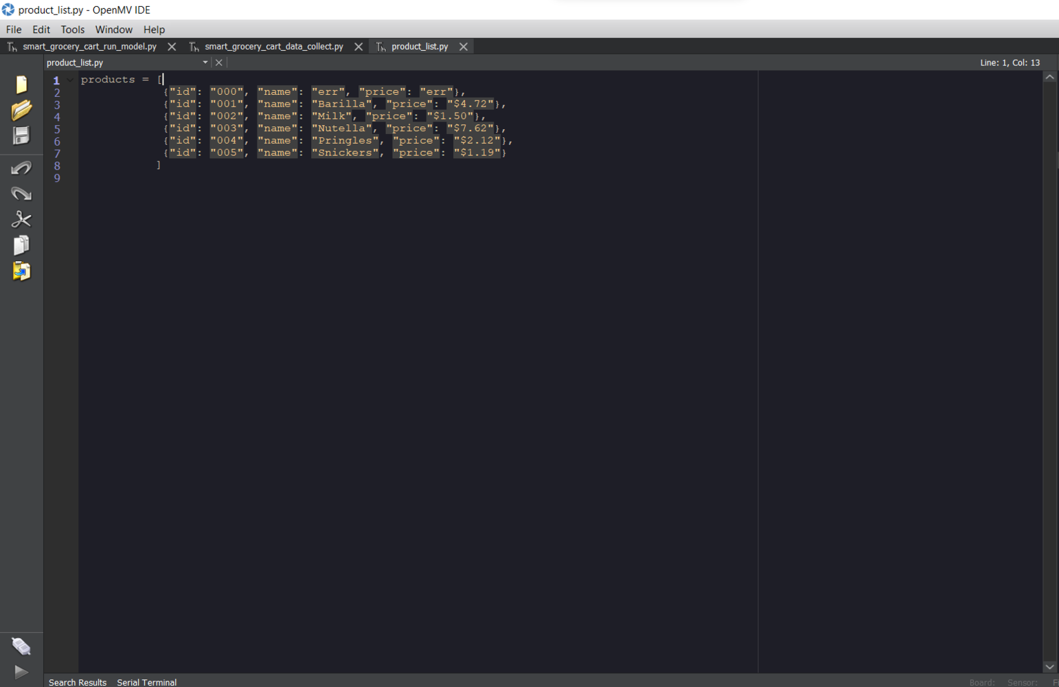 Before proceeding with the following steps, I needed to install the OpenMV IDE in order to program OpenMV Cam H7. Plausibly, the OpenMV IDE includes all required libraries and modules for this project. Therefore, I did not need to download additional modules after installing the OpenMV IDE from here. You can get more information regarding the specific OpenMV MicroPython libraries from here. After setting up OpenMV Cam H7 on the OpenMV IDE, I programmed OpenMV Cam H7 to capture product images in order to store them on the SD card and create appropriately labeled samples for the Edge Impulse object detection (FOMO) model. Since I decided to distinguish foods and drinks with classes while creating a valid data set for the object detection model, I utilized the joystick attached to OpenMV Cam H7 so as to choose among two different classes. After selecting a class, OpenMV Cam H7 captures a picture, appends the selected class name (Food or Drink) with the current date & time to the file name, and then saves the captured image to the SD card under the samples folder.- Joystick (Up) β‘ Food