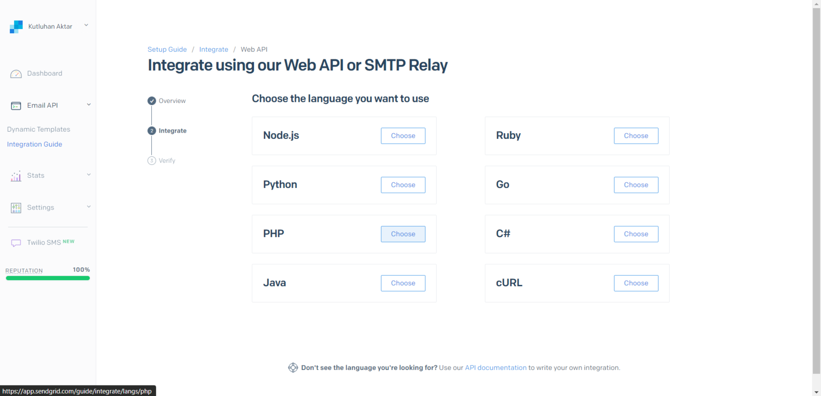 Step 3: Creating a Twilio SendGrid account to send emails from localhost