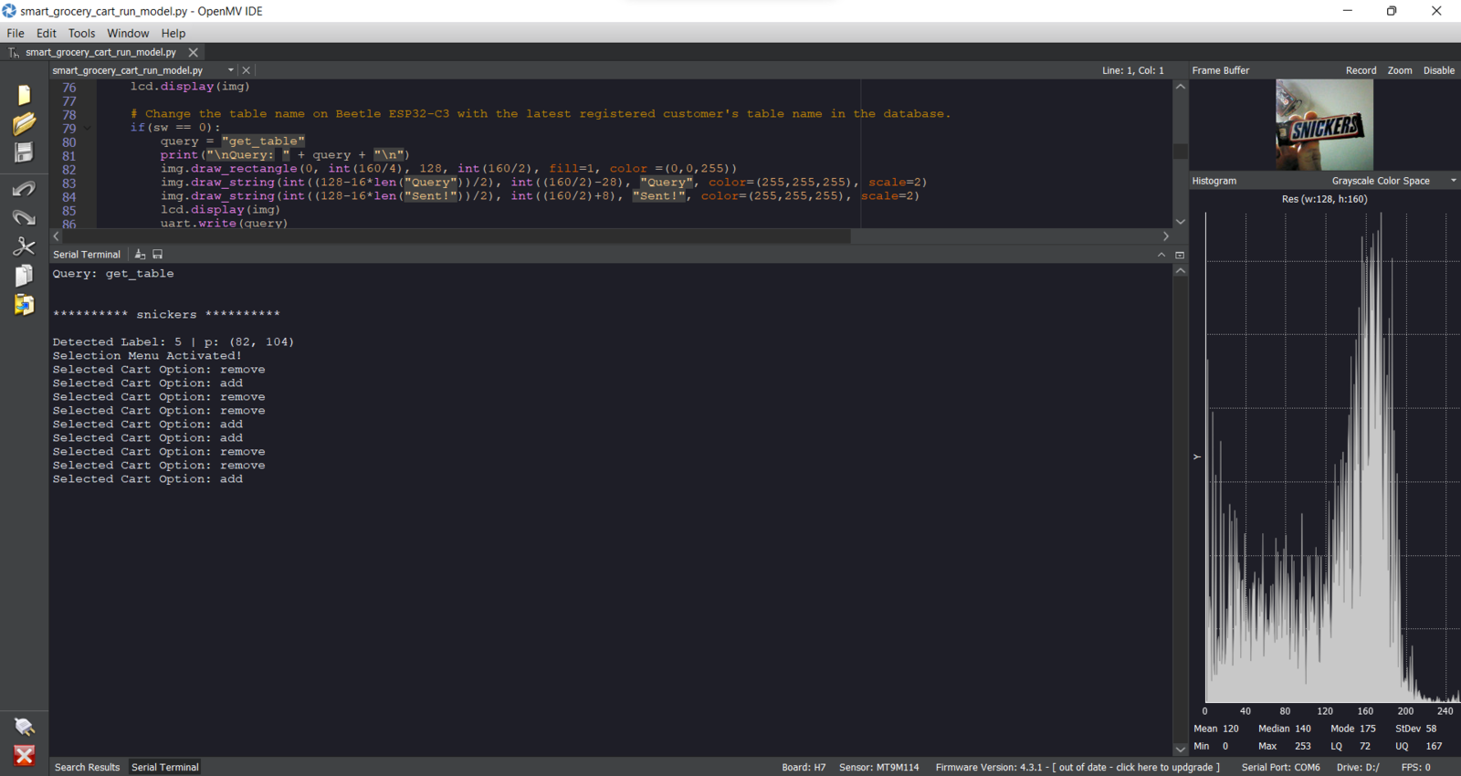 Step 9: Running the FOMO model on OpenMV Cam H7 to detect products and communicating with the web application via Beetle ESP32-C3