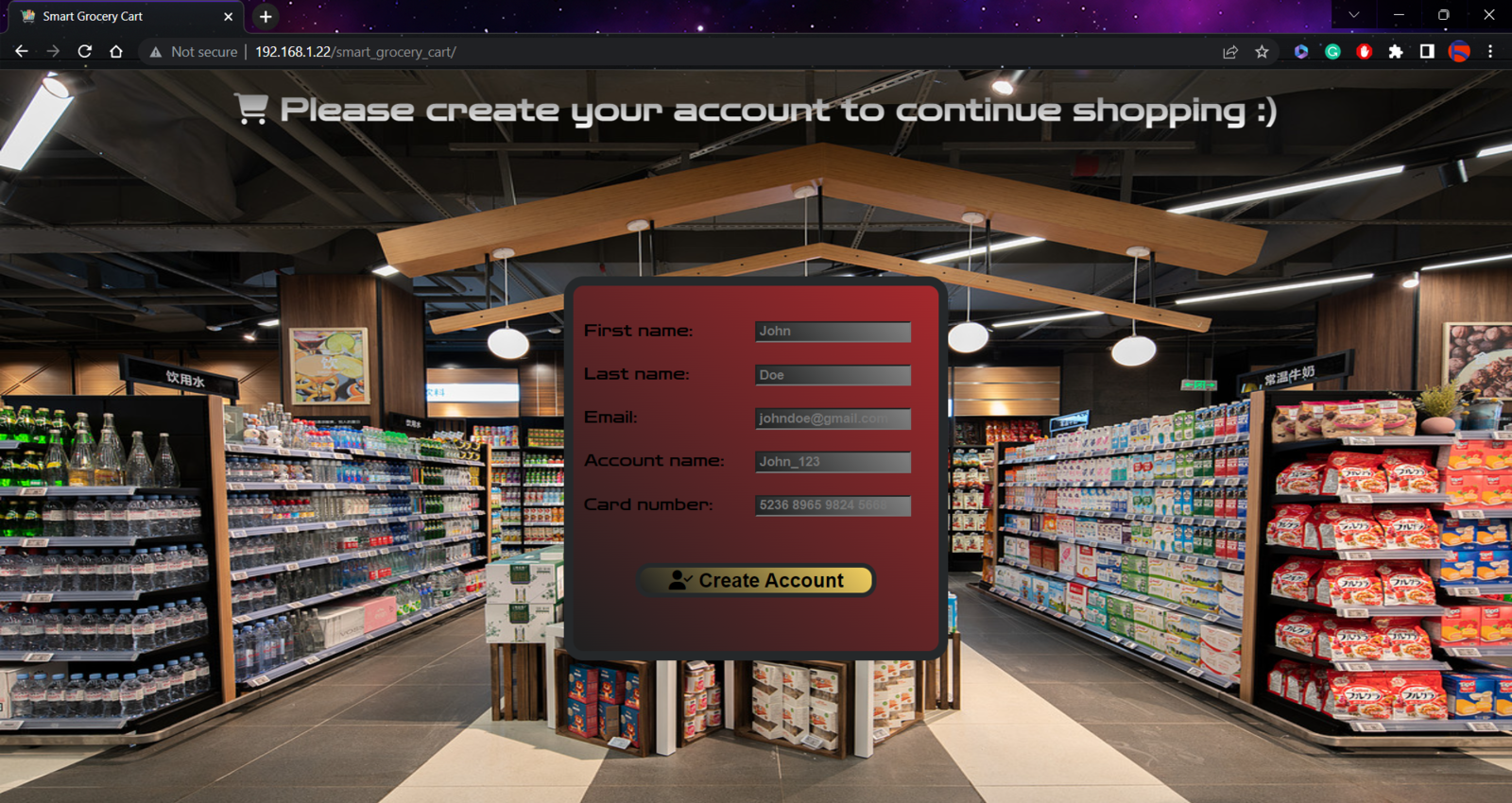 After setting the web application on LattePanda 3 Delta 864: πποΈπ² The web application interface (index.php) lets the customer create an account by filling out the form:- First name