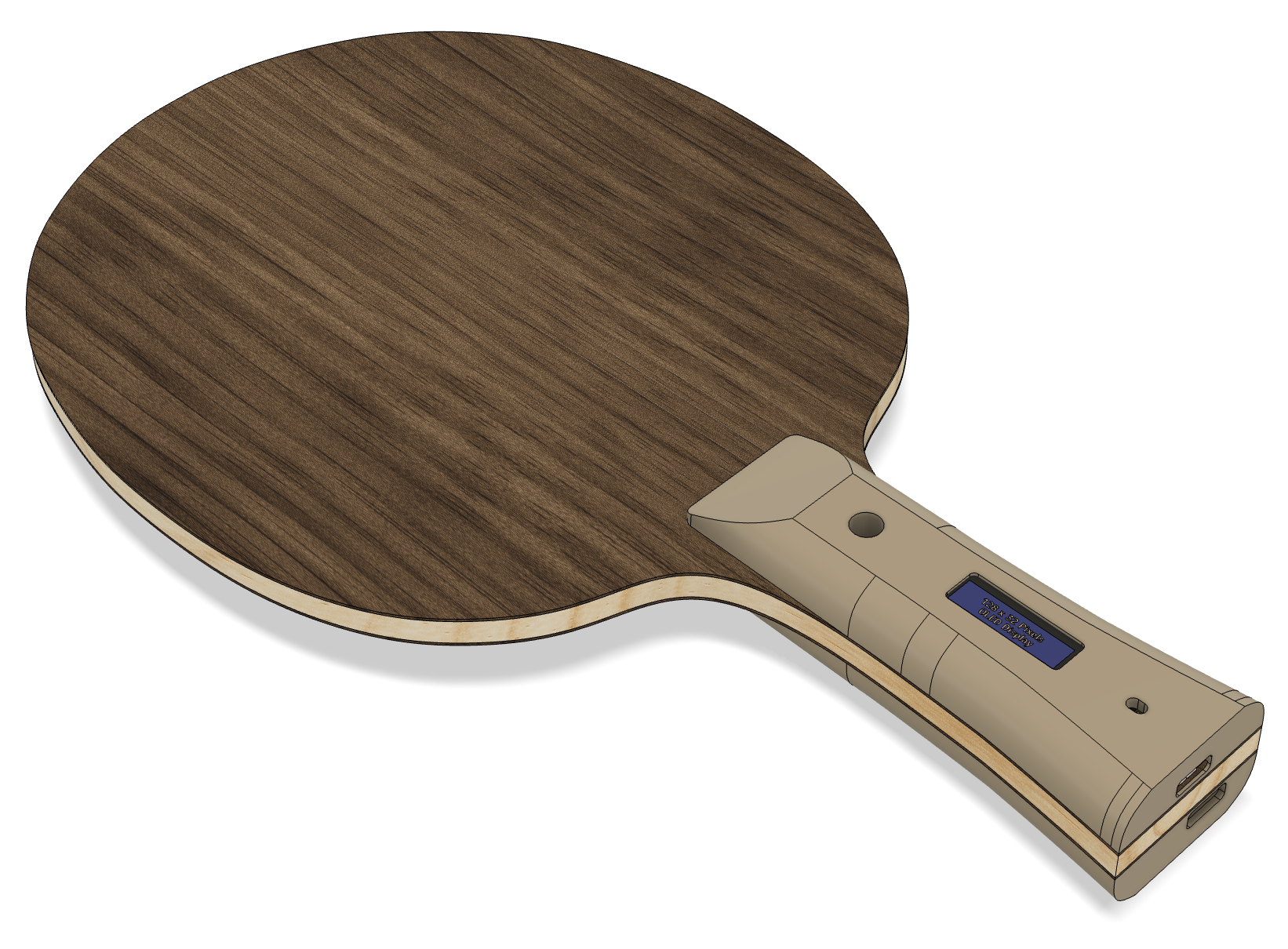 I custom ordered a table tennis blade without a handle so the build would feel like a real racket. I then designed a two part handle in Fusion 360 with hollow interiors and printed both halves. The internal cavities and simple mounts hold the Arduino Nano 33 BLE Sense Rev2, the SSD1306 OLED, a boost converter, the LiPo battery, and a small power switch. The layout keeps the weight balanced, routes the wiring inside, and leaves both the power switch and the USB port accessible for charging and firmware updates.Step 1: Prepare the 3D-Printed Handle