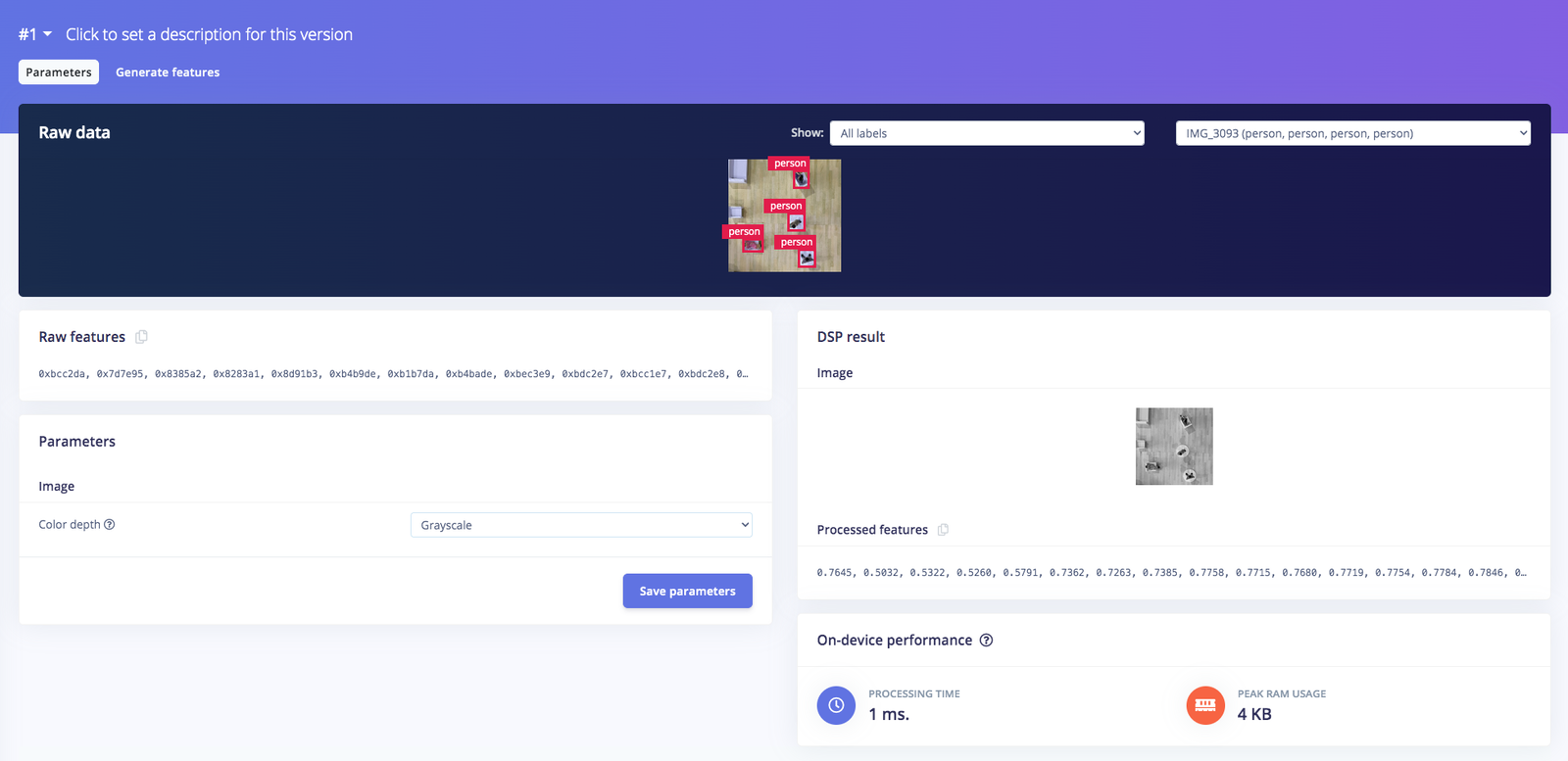 Open studio.edgeimpulse.com, login (or create an account first), then create a new Project. Choose the Images project option, then Classify Multiple Objects. In Dashboard > Project Info, choose Bounding Boxes for labelling method and Sony Spresense for target device. Then in Data acquisition, click on Upload Data tab, choose your photo files, auto split, then click Begin upload. Click on Labelling queue tab then start drag a box around an object and label it (person) and Save. Repeat until all images are labelled.