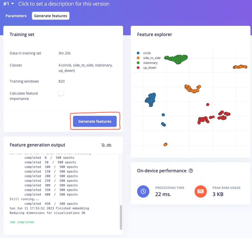 Even though it is a simple example, the Edge Impulse Studio prepared an excellent machine learning model just by using the default recommended parameters, in just a couple of minutes.