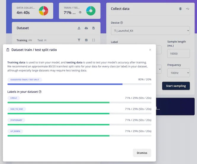 Edge Impulse provides multiple options for data acquisition. In this Getting Started Guide, we will look at the direct data ingestion from the board usingedge-impulse-daemon. Please follow the below steps for data acquisition: