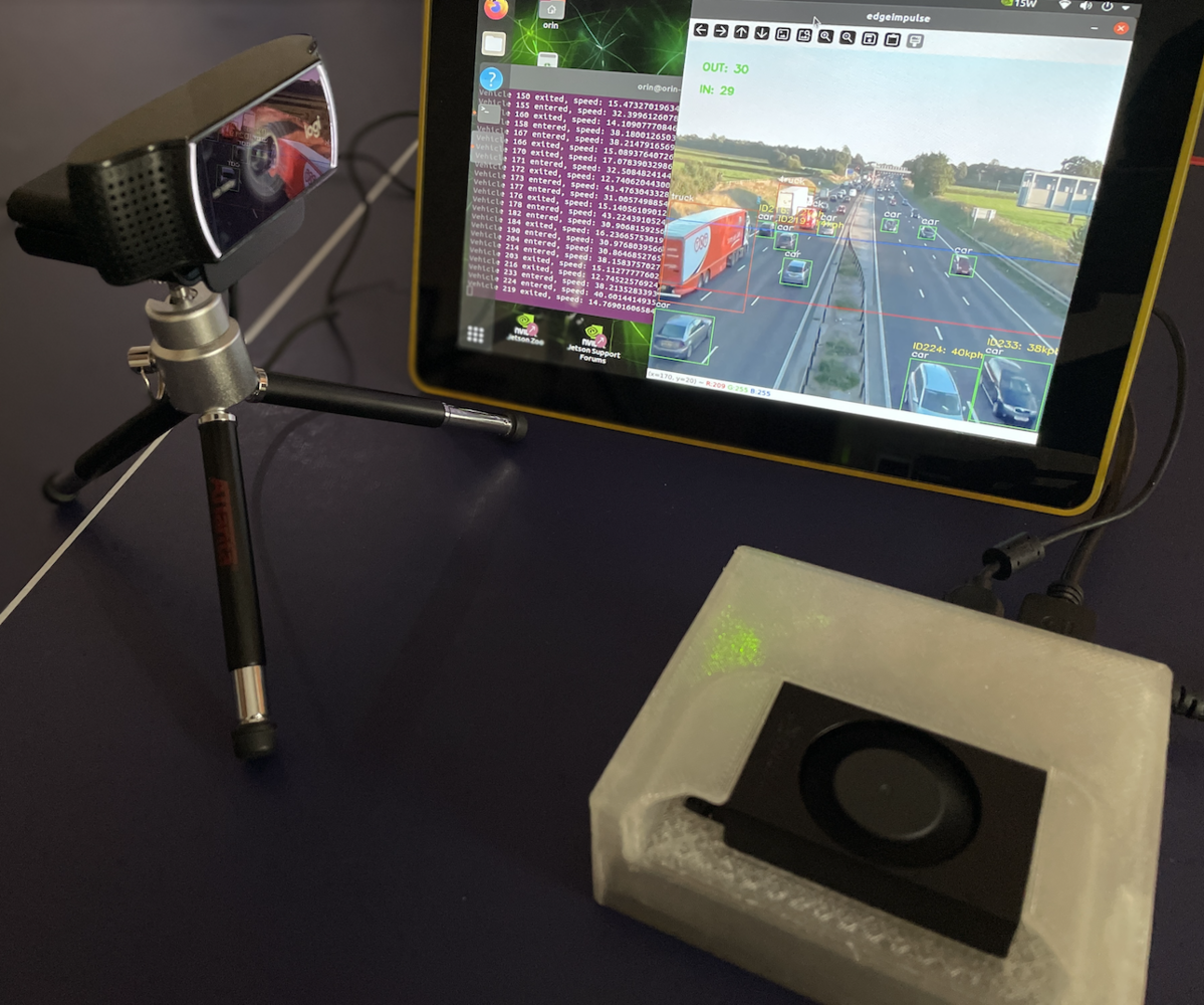An object detection model from Edge Impulse is one way of addressing this problem, as model inference output will contains data labels, object coordinates, and timestamps. From this data, we will derive the object’s speed and direction, as well as count objects entering or exiting. To simplify the process, we will use an NVIDIA TAO - YOLOv4 pre-trained neural network to build our model, then deploy on to an NVIDIA Jetson Orin Nano. This method grants access to a wide range of pre-trained models, enabling you to leverage existing neural network architectures and weights for your specific tasks. Therefore, the amount of data we need to collect is less than what’s typically required when training and building an object detection model from scratch. The Edge Impulse model, combined with NVIDIA TAO, are optimized for efficient performance, achieving faster inference speeds through the Tensor RT library embedded in Orin Nano, which is essential for real-time applications. Overall, this approach can greatly accelerate the development cycle, enhance model performance, and streamline the process for Edge AI applications.