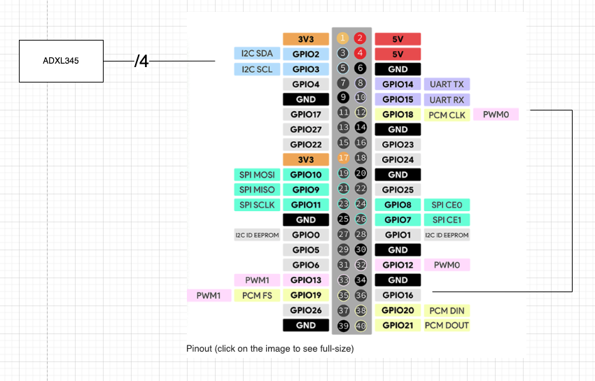 First, connect the accelerometer to the Raspberry Pi header like so: