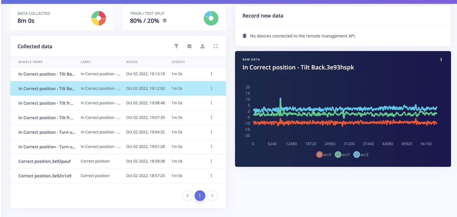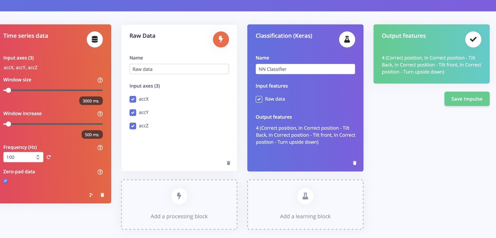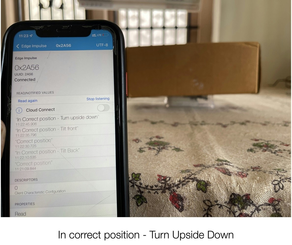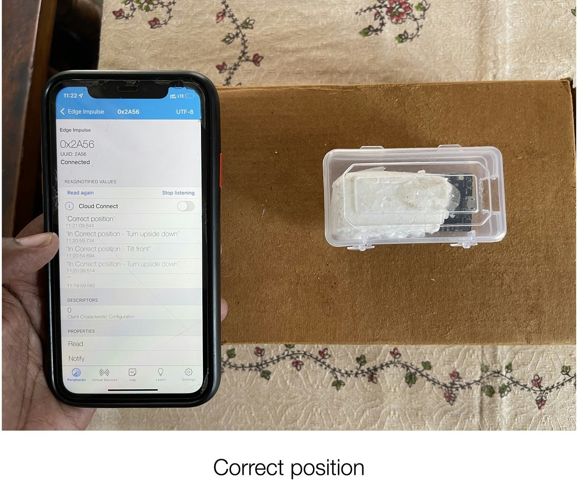 I have created a TinyML model which can be attached to a fragile package and it tracks and predicts the position of the package, with the results communicated to a Mobile application through BLE. For hardware, I have used the SiLabs Thunderboard Sense 2 and Edge Impulse to train the model and deploy it to the Thunderboard Sense 2. The predicted result will be one of four categories:- Correct position