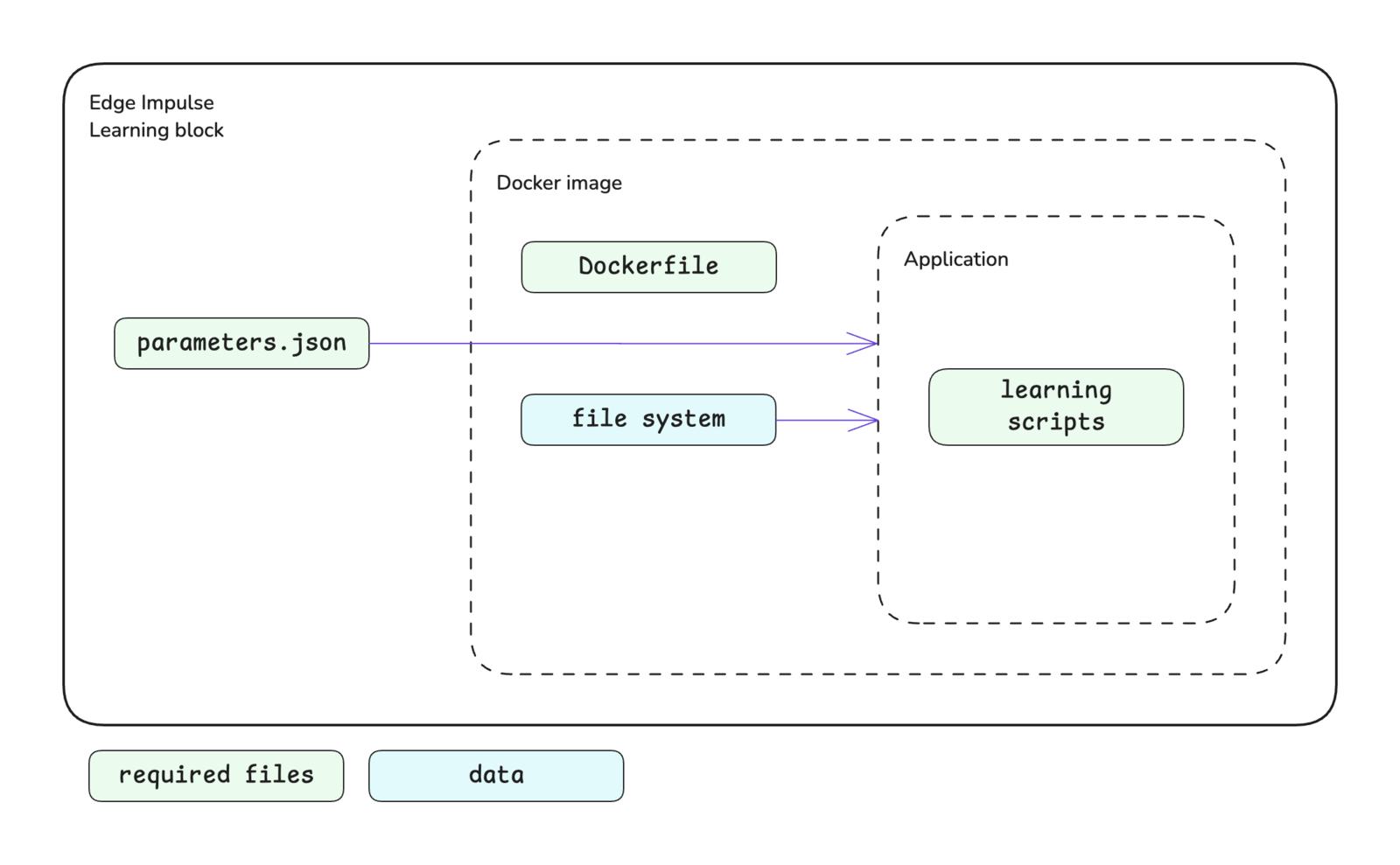 Learning blocks have access to command line arguments and training data.Command line arguments