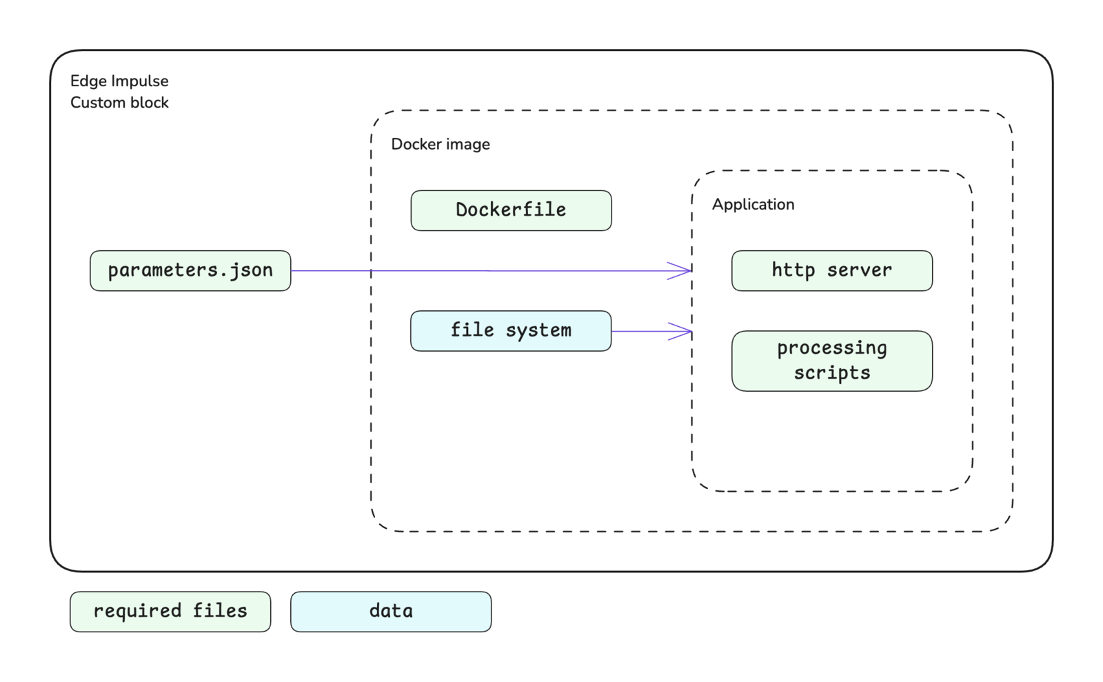 The processing block structure is shown below. A key difference for processing blocks versus other types of blocks is that they implement an HTTP server within the application. Please see the custom blocks overview page for more details.