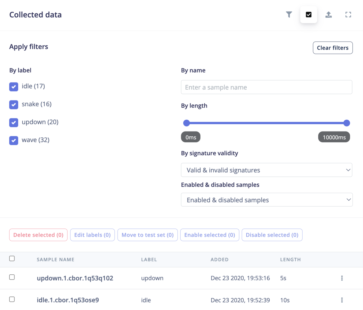 Manually navigating to some categories of data can be time-consuming, especially when dealing with a large dataset. The data acquisition filter enables the user to filter data samples based on some criteria of choice. This can be based on:- Label - class to which a sample represents.