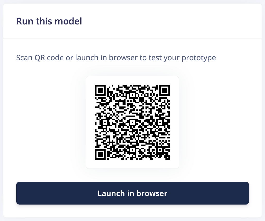You can run your impulse directly in your web browser using your computer or mobile phone without the need of an additional app. To run on your computer, click Launch in browser. To run on your mobile phone, scan the QR code and click Switch to classification mode.