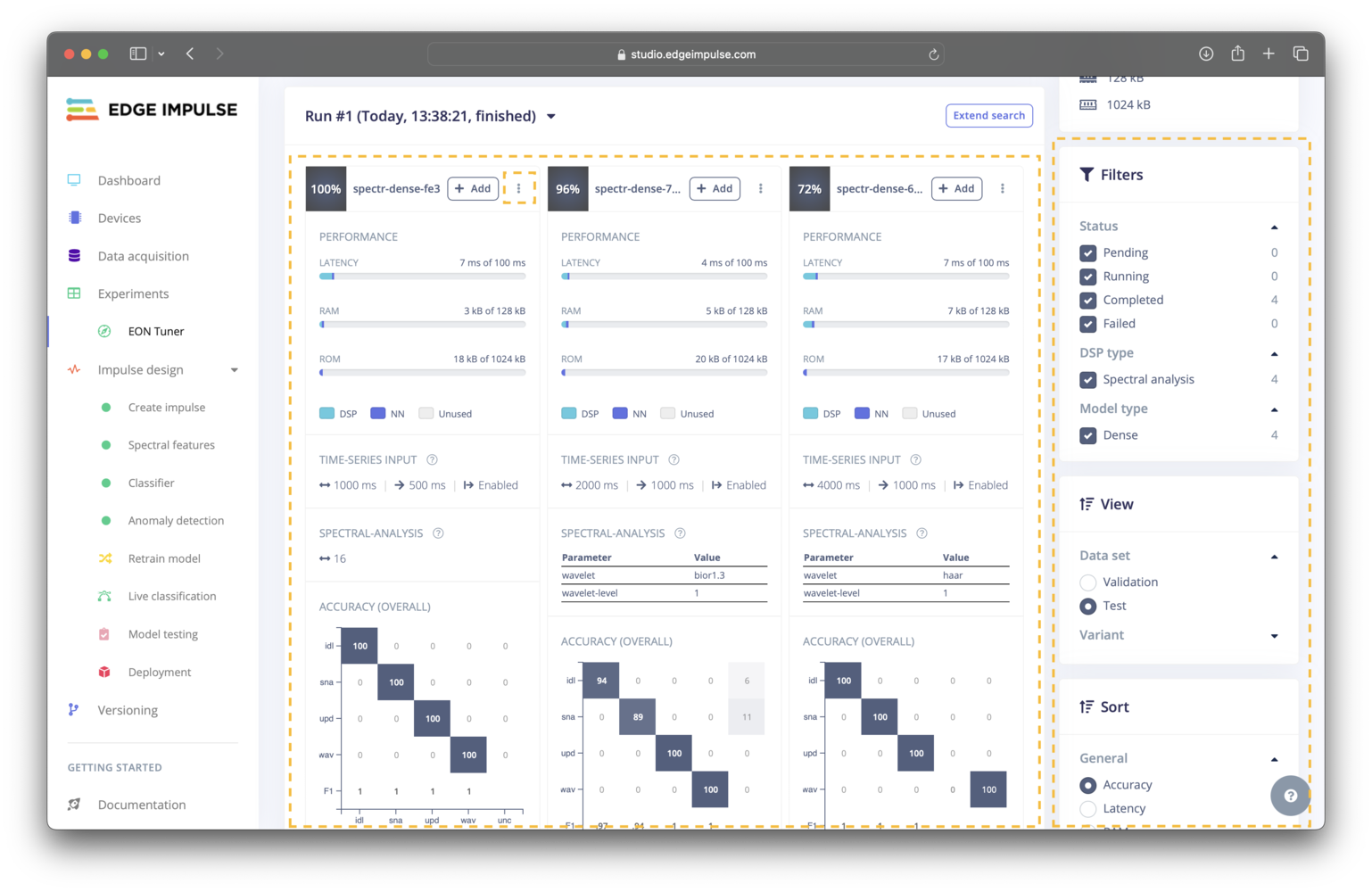 The videos above show a previous version of the EON Tuner. The Studio user interface and the EON Tuner configuration, operation, and results have since been updated. However, the videos provide relevant background information and are still worth watching, even though you will come across differences in your projects today.