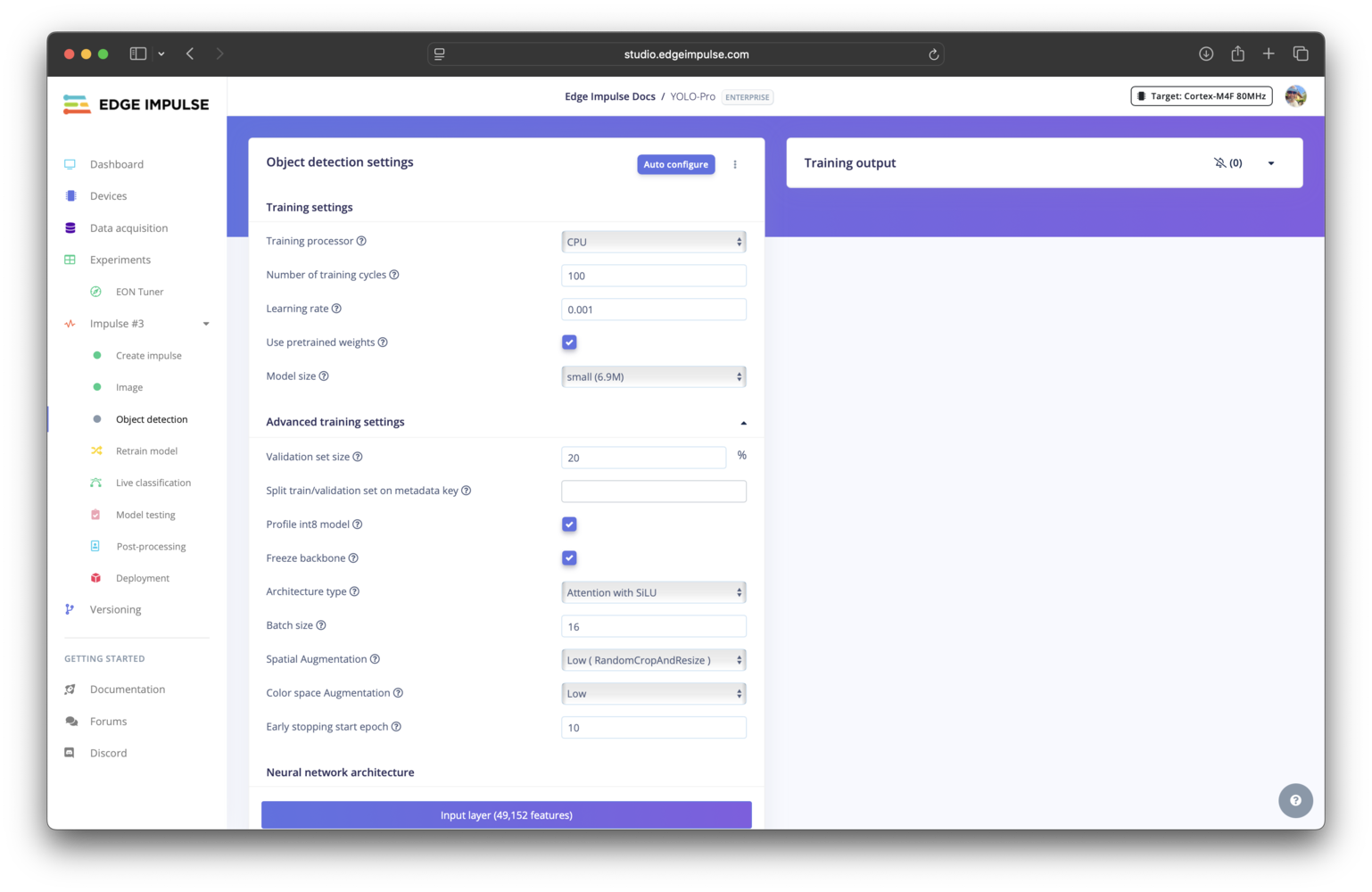 There are a number of settings specific to the YOLO-Pro models that can be configured. When in doubt, the best approach is to use the EON Tuner to help you decide. Please refer to the learning blocks overview for settings that are common across all learning blocks.