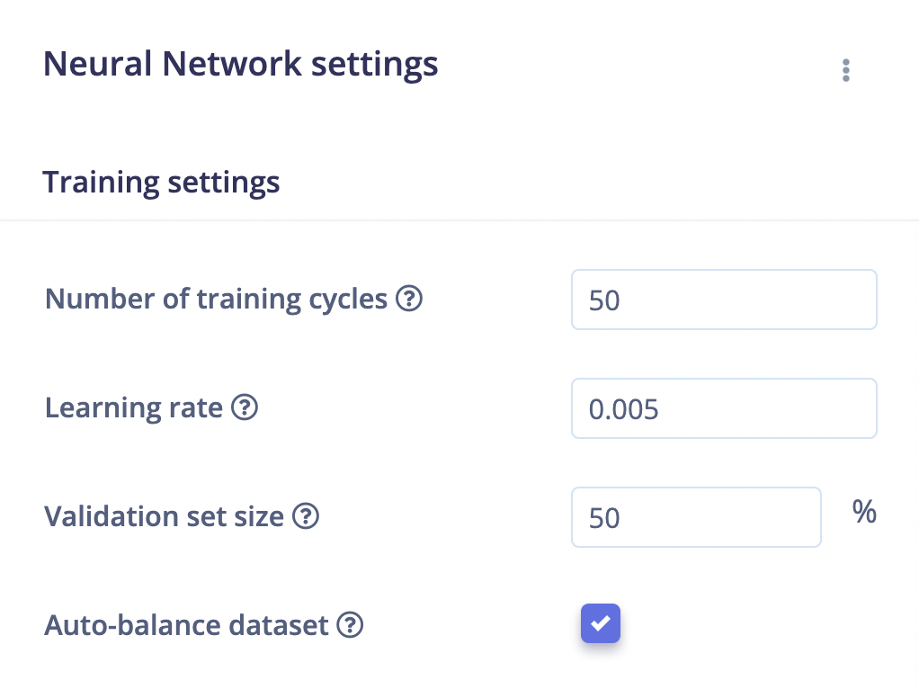 Neural Network Settings