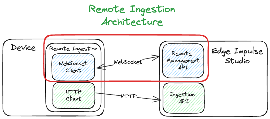 The diagram below shows a typical full session of the remote ingestion process that involves both remote management and ingestion services.