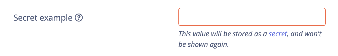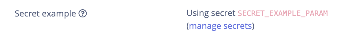 | Secret | Text box | <param-name> (environment variable) |