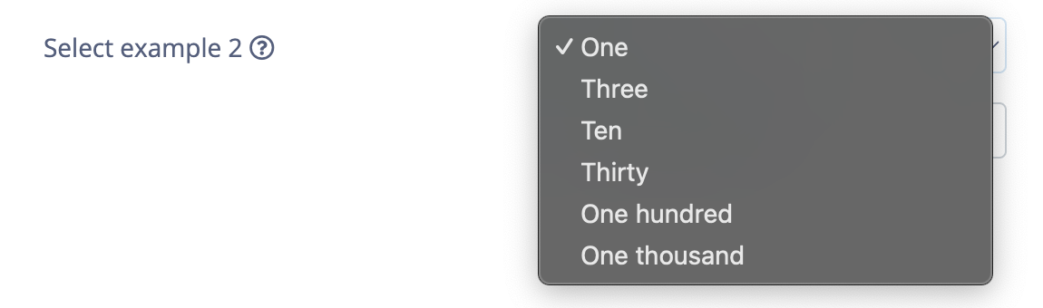 | Select | Dropdown | --<param-name> <value> |